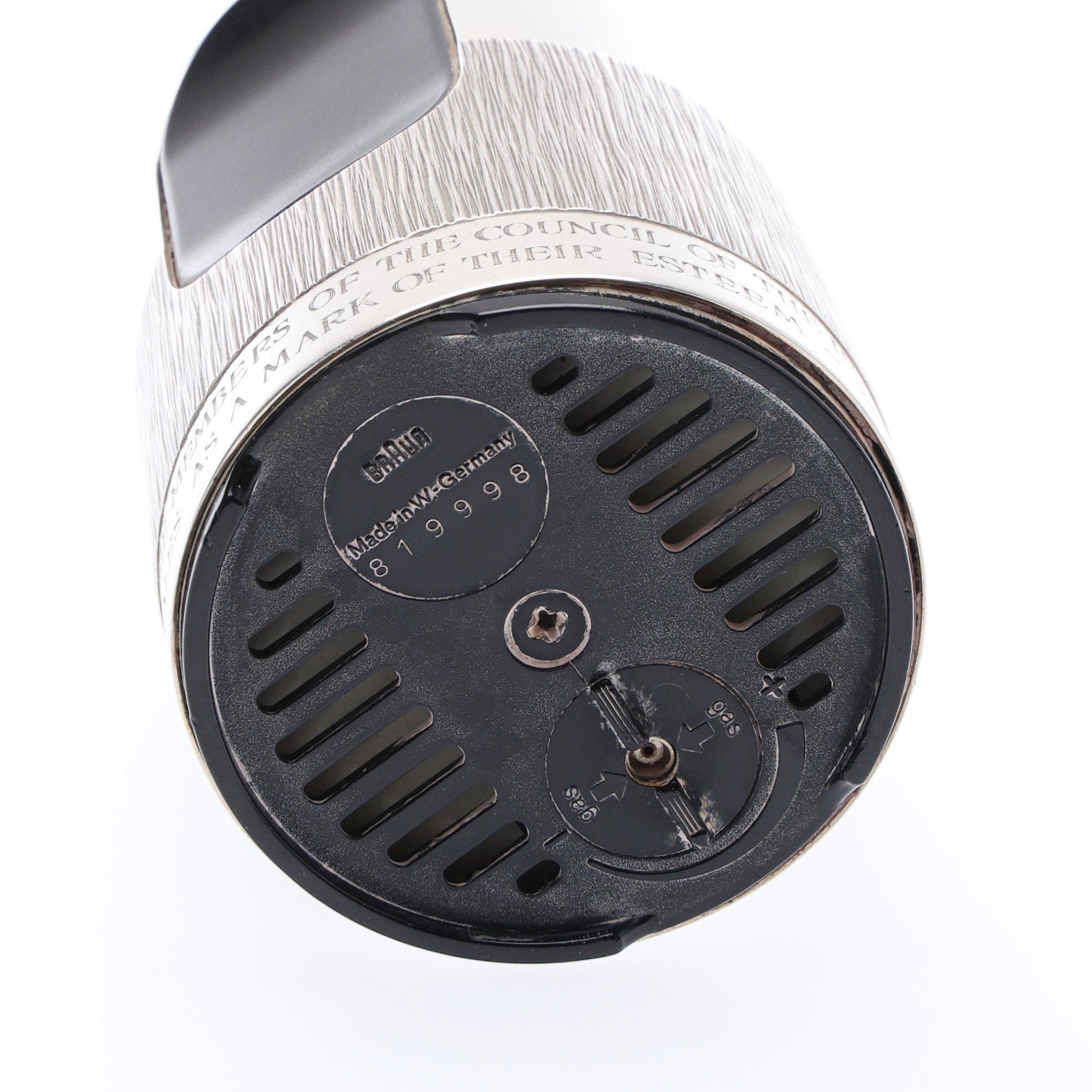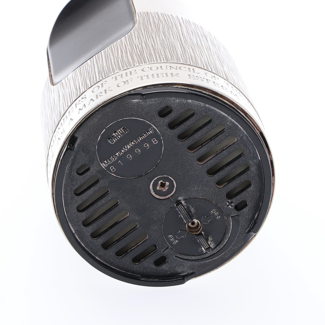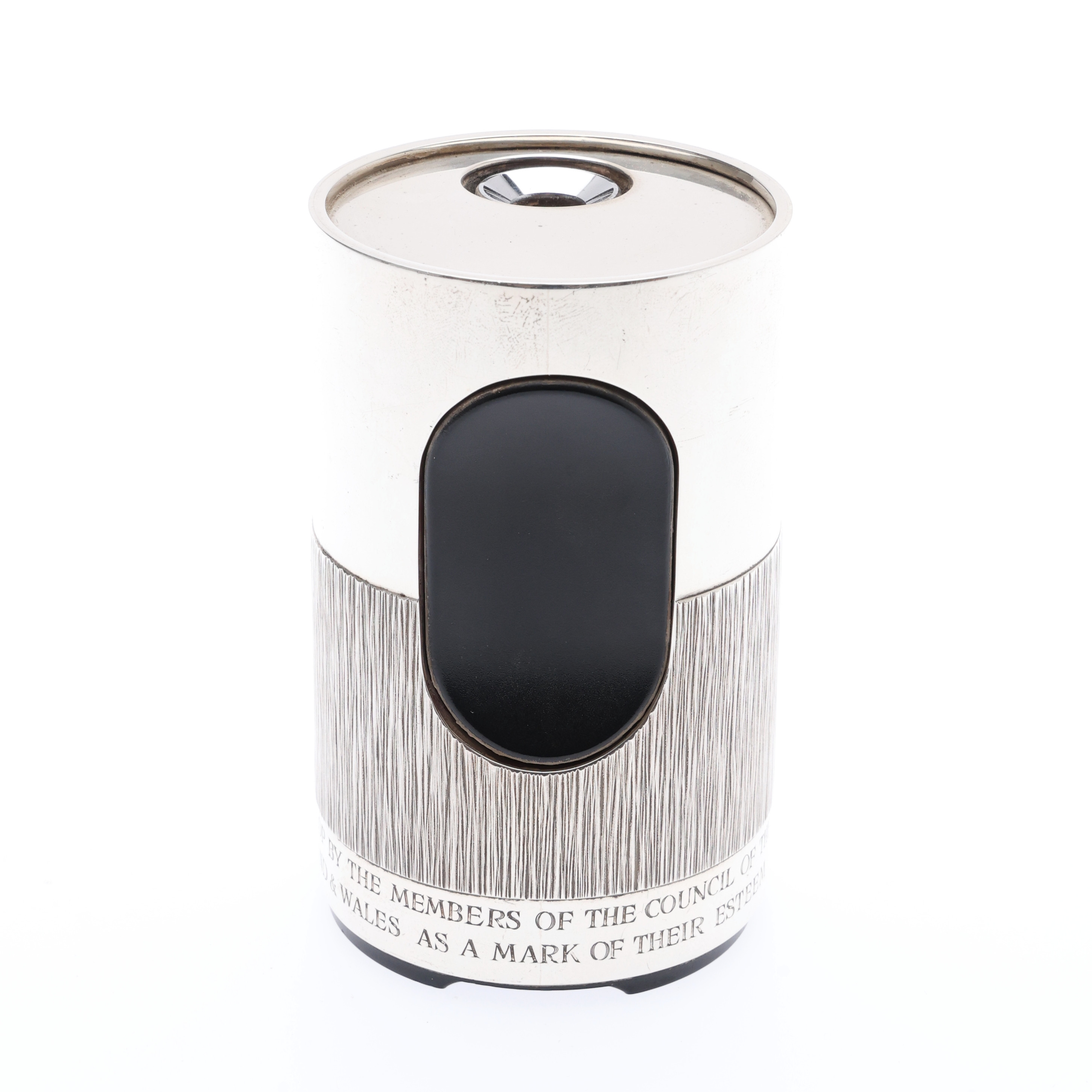 5008025. GERALD BENNEY CBE (1930-2008), SILVER MOUNTED PRESENTATION TABLE LIGHTER.