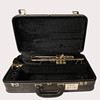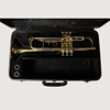 Brass trumpet with attached case.