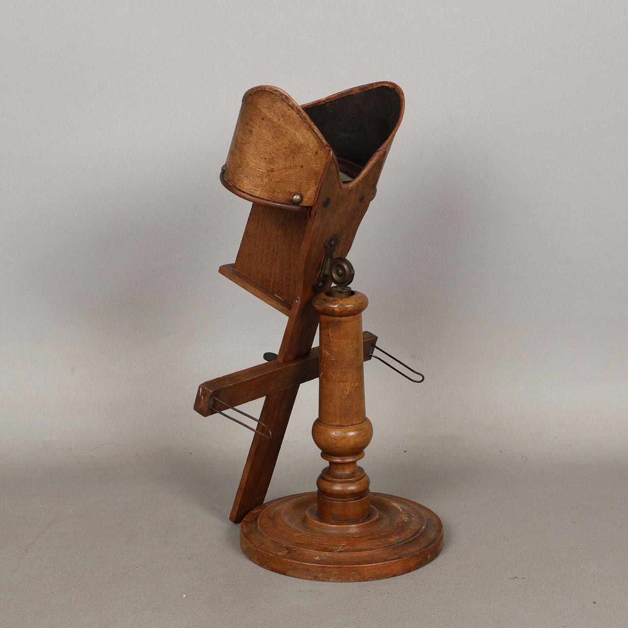 The wooden stereoscopic viewer on stand, stamped 'G. C. & Co. M', measuring 27cm height.