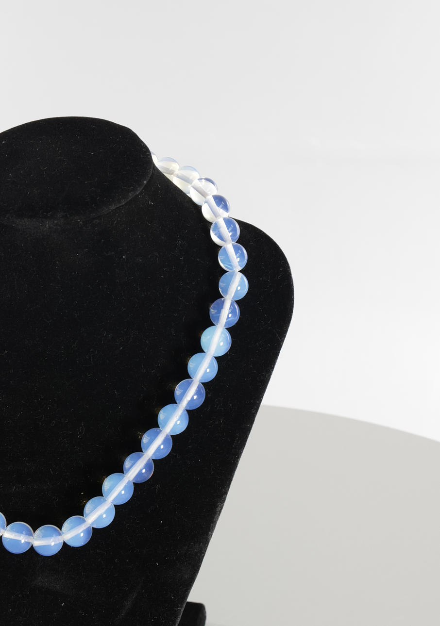 Necklace with clear opal beads.