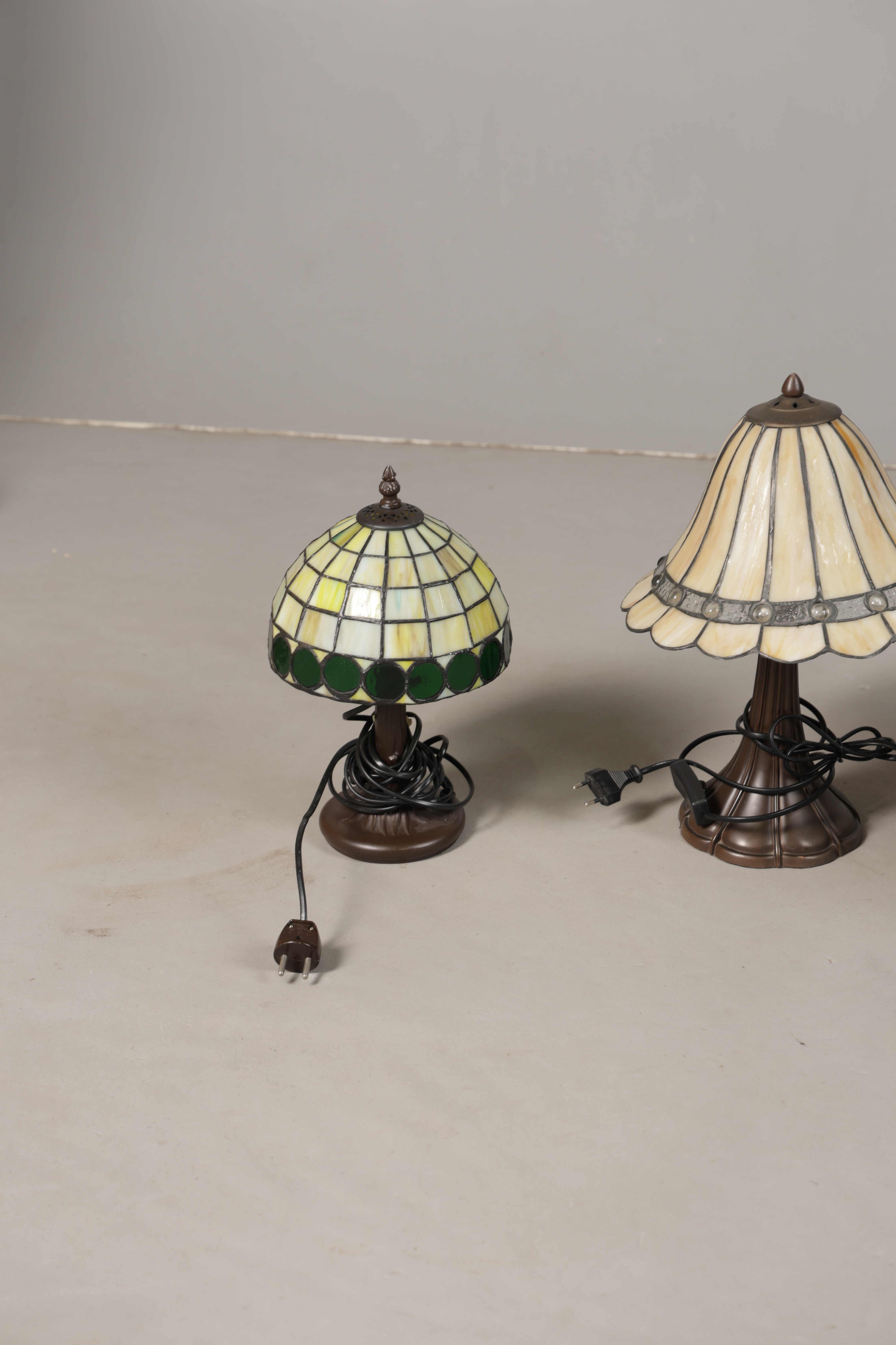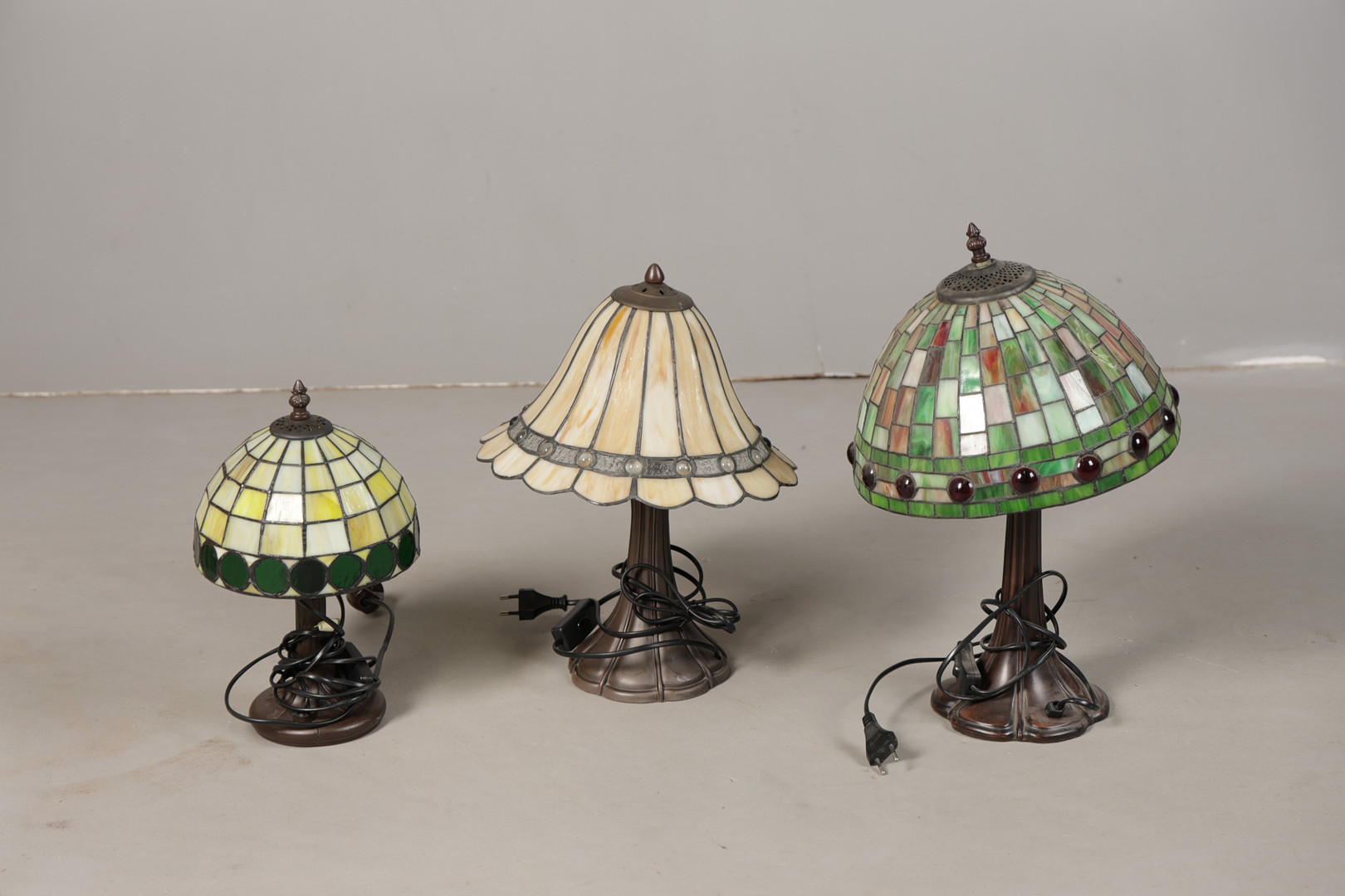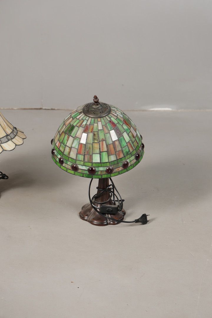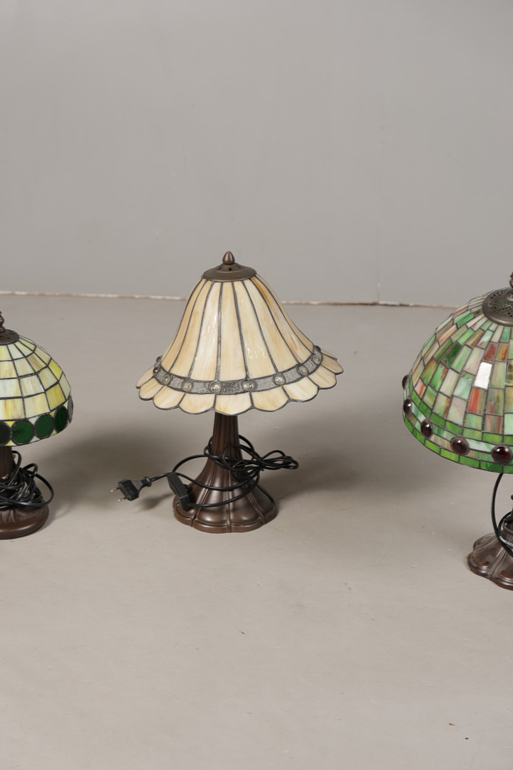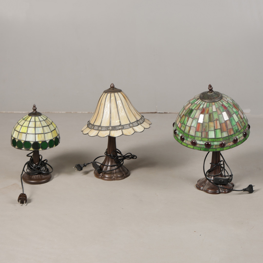 5008326. THREE VARIOUS TIFFANY-STYLE TABLE LAMPS (3).