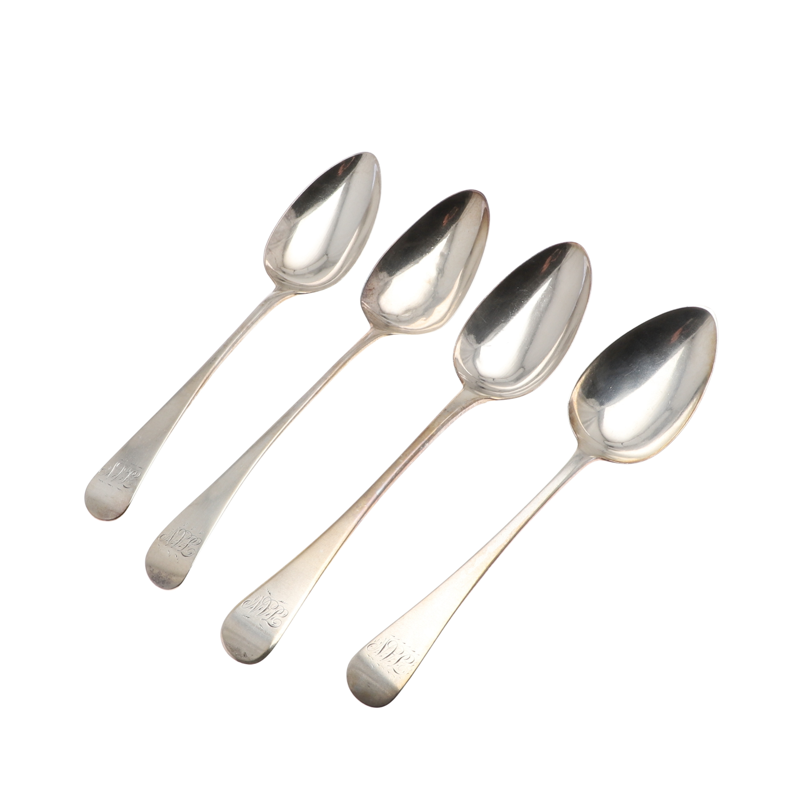 5008421. FOUR GEORGE III SILVER OLD ENGLISH PATTERN TABLE SPOONS.