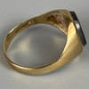 9ct gold hallmarked signet ring set with an oval stone engraved with a Centurion's head approximately 3.3g, size P.