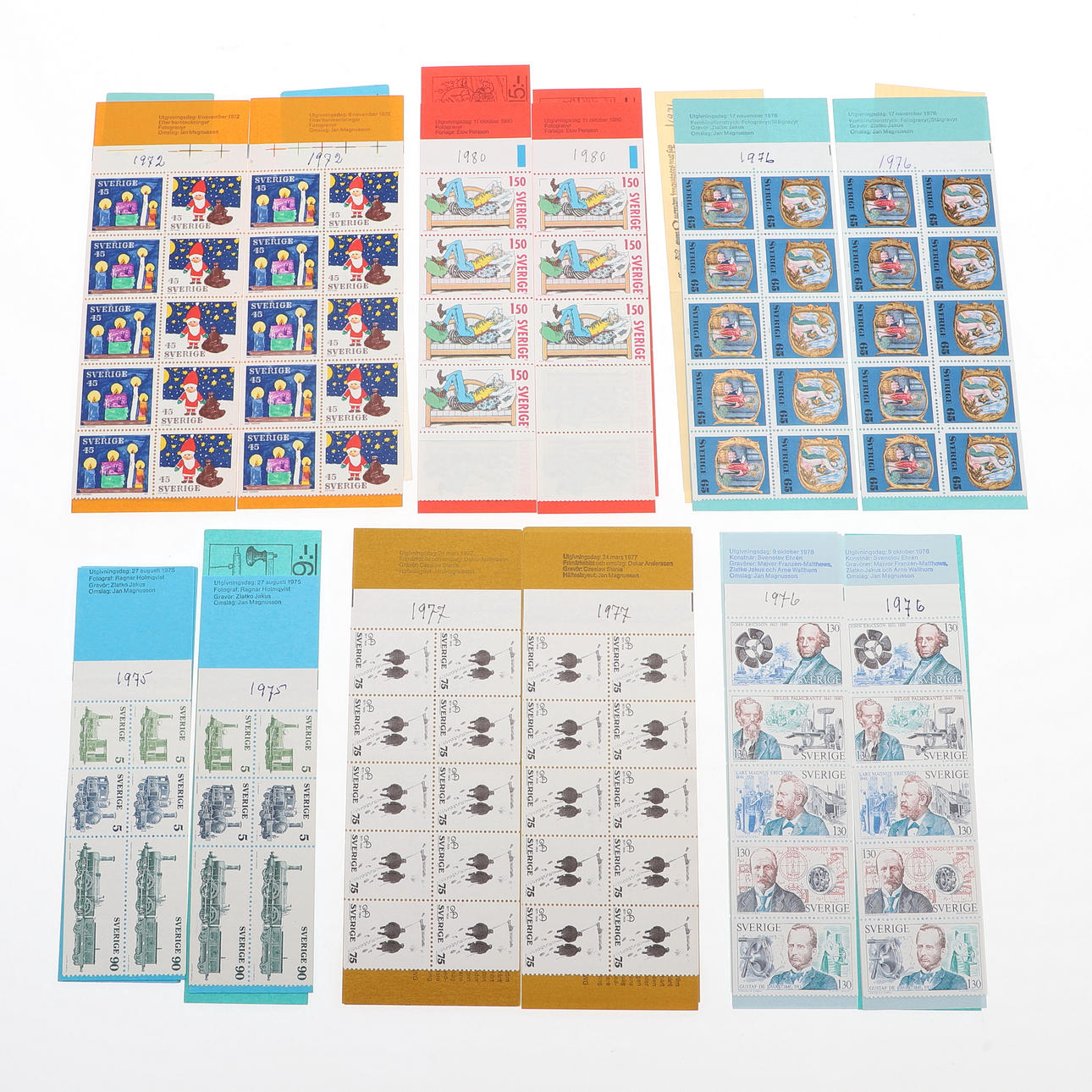 Denominations from 5 öre to 1.40 kronor, booklet prices from 2-15 kronor.