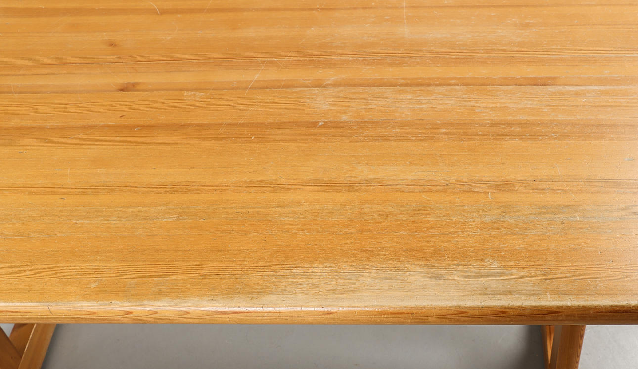 DINING TABLE A pine trestle table, second half of the 20th century.