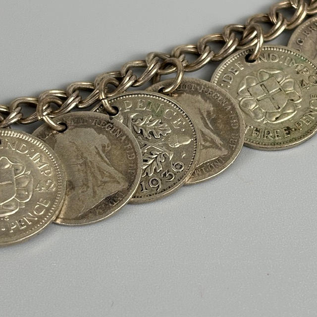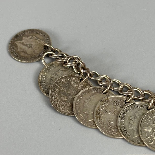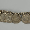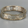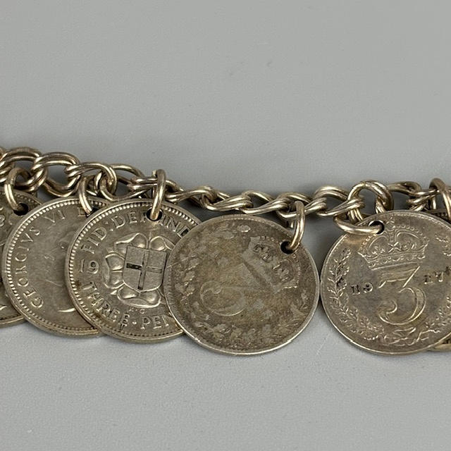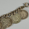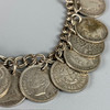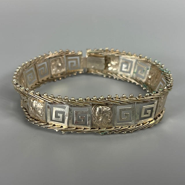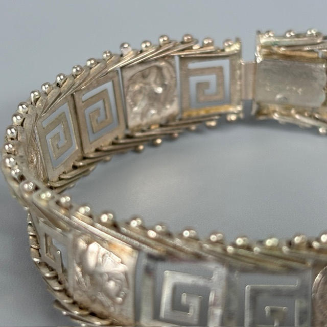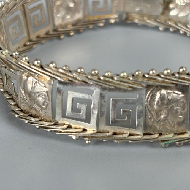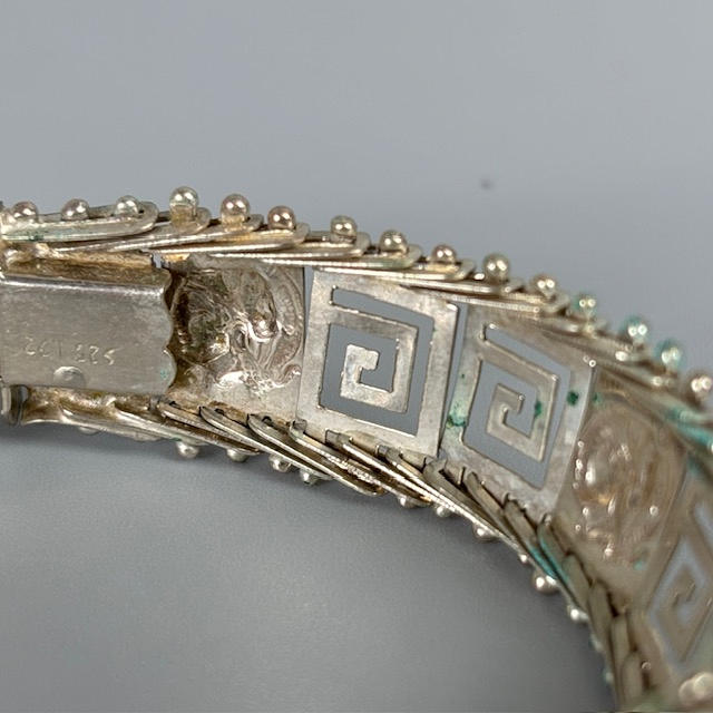 925 silver Greek design bracelet, bracelet made from 3d coins of assorted dates, pale stone set silver ring size P.