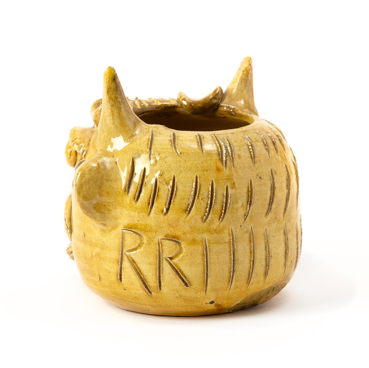 Glazed earthenware, height 9.5 cm. Signed RR.