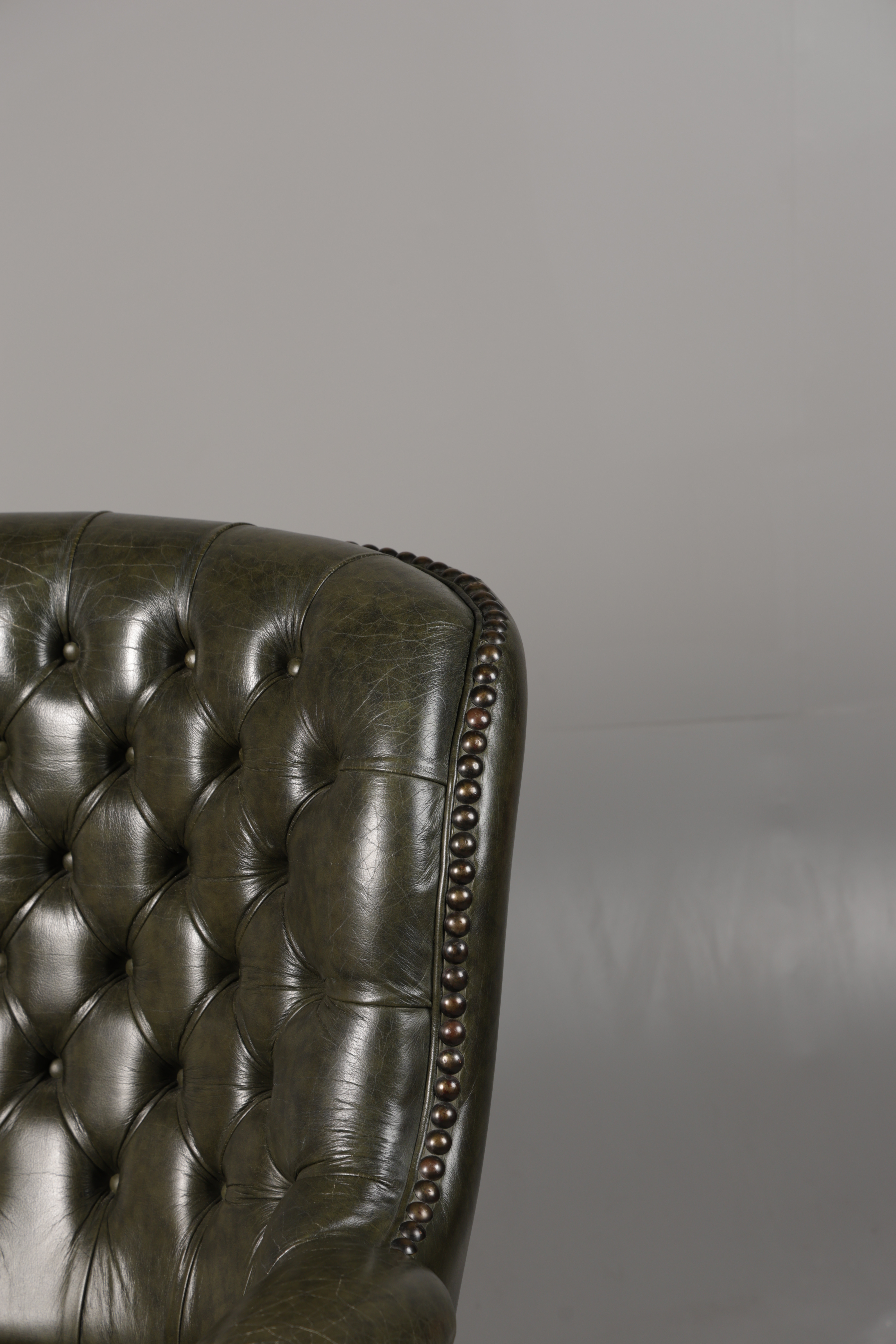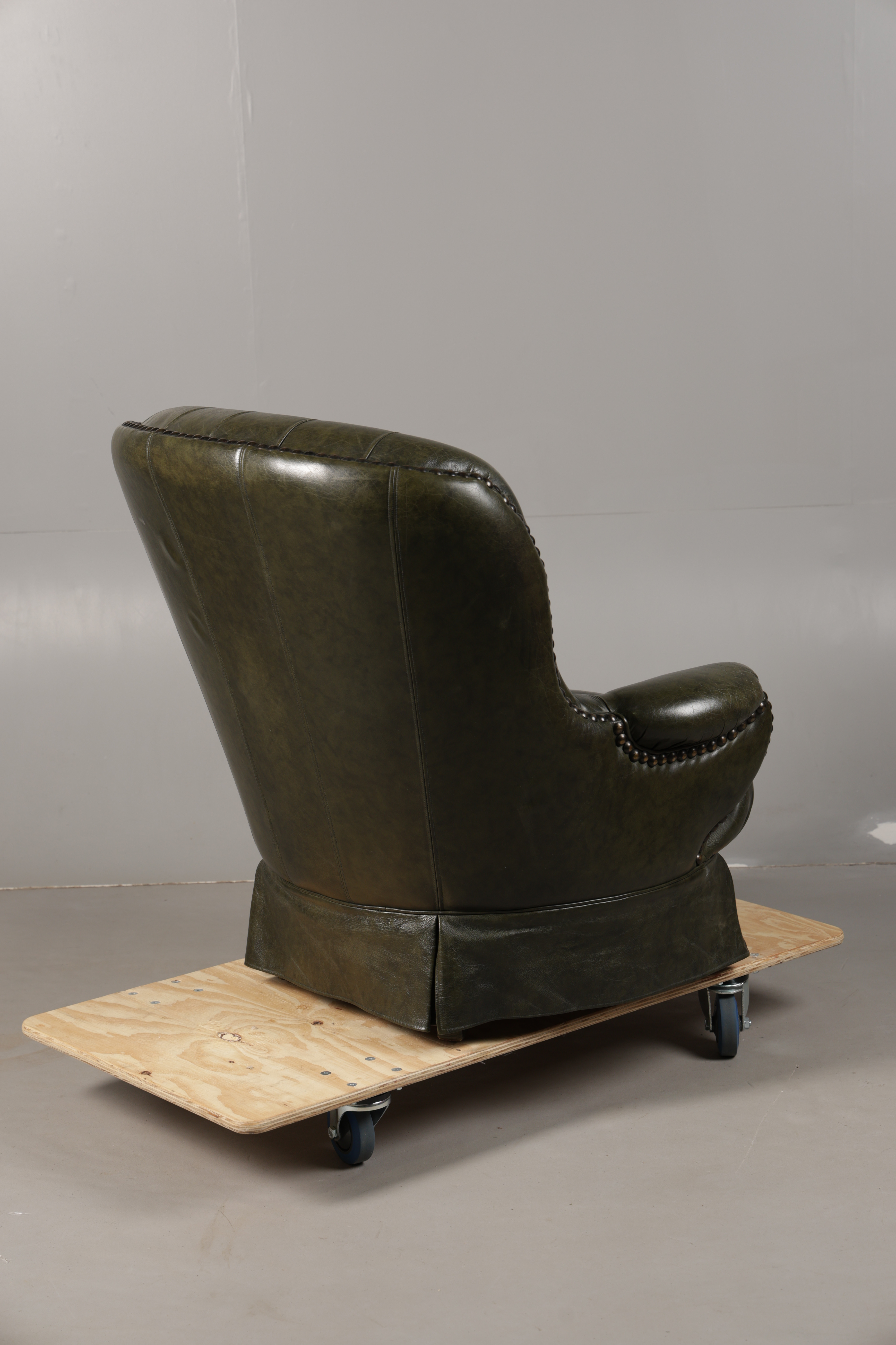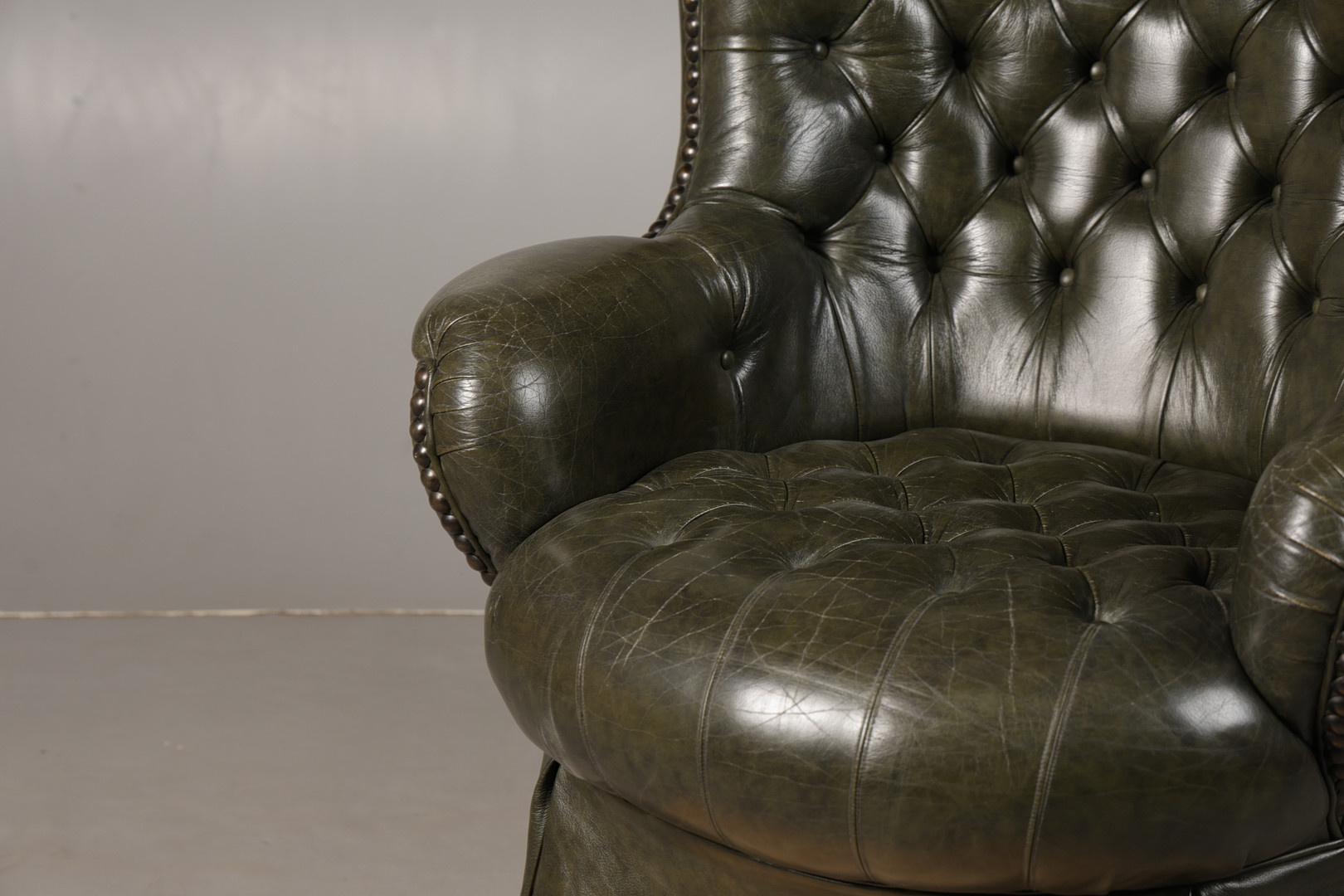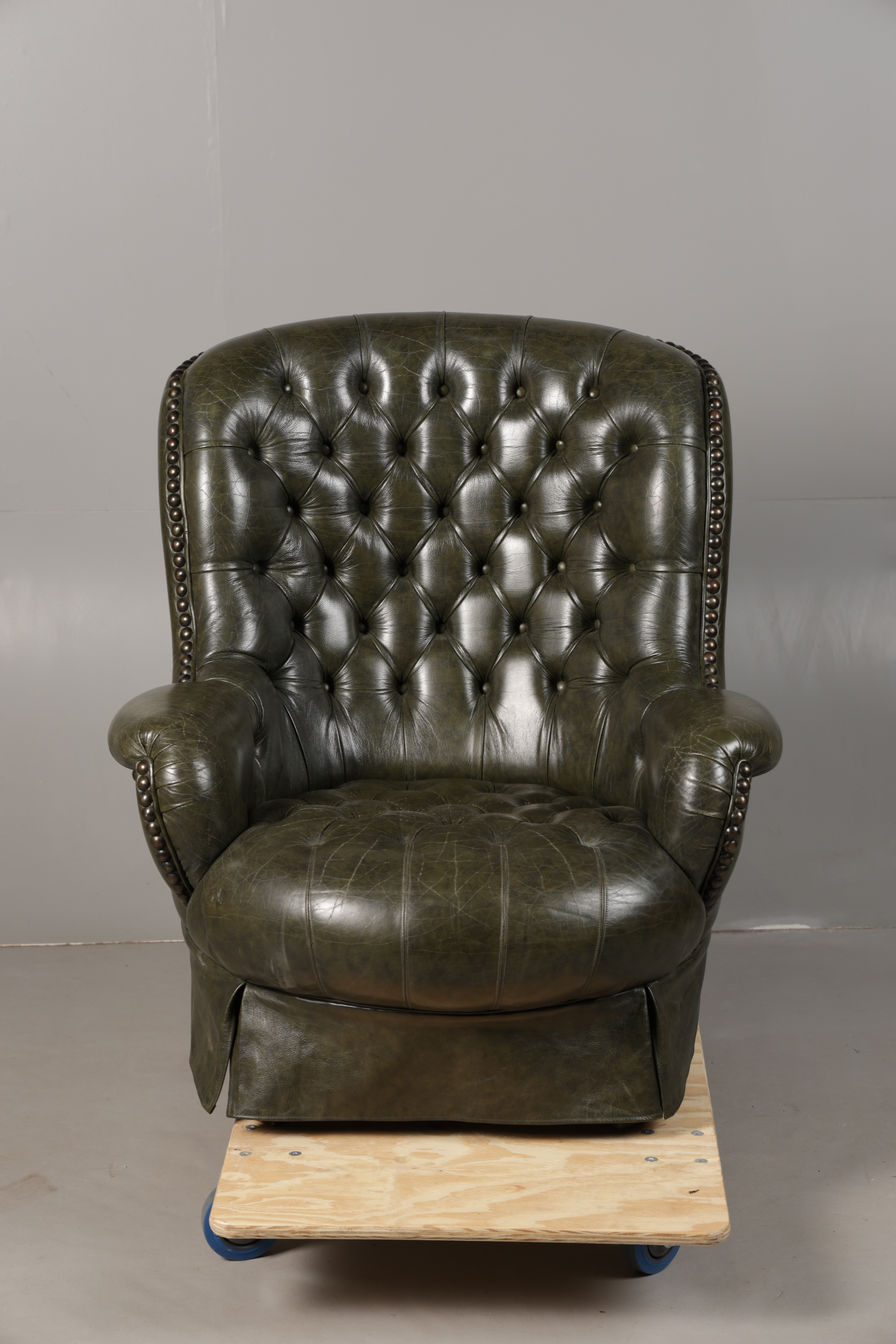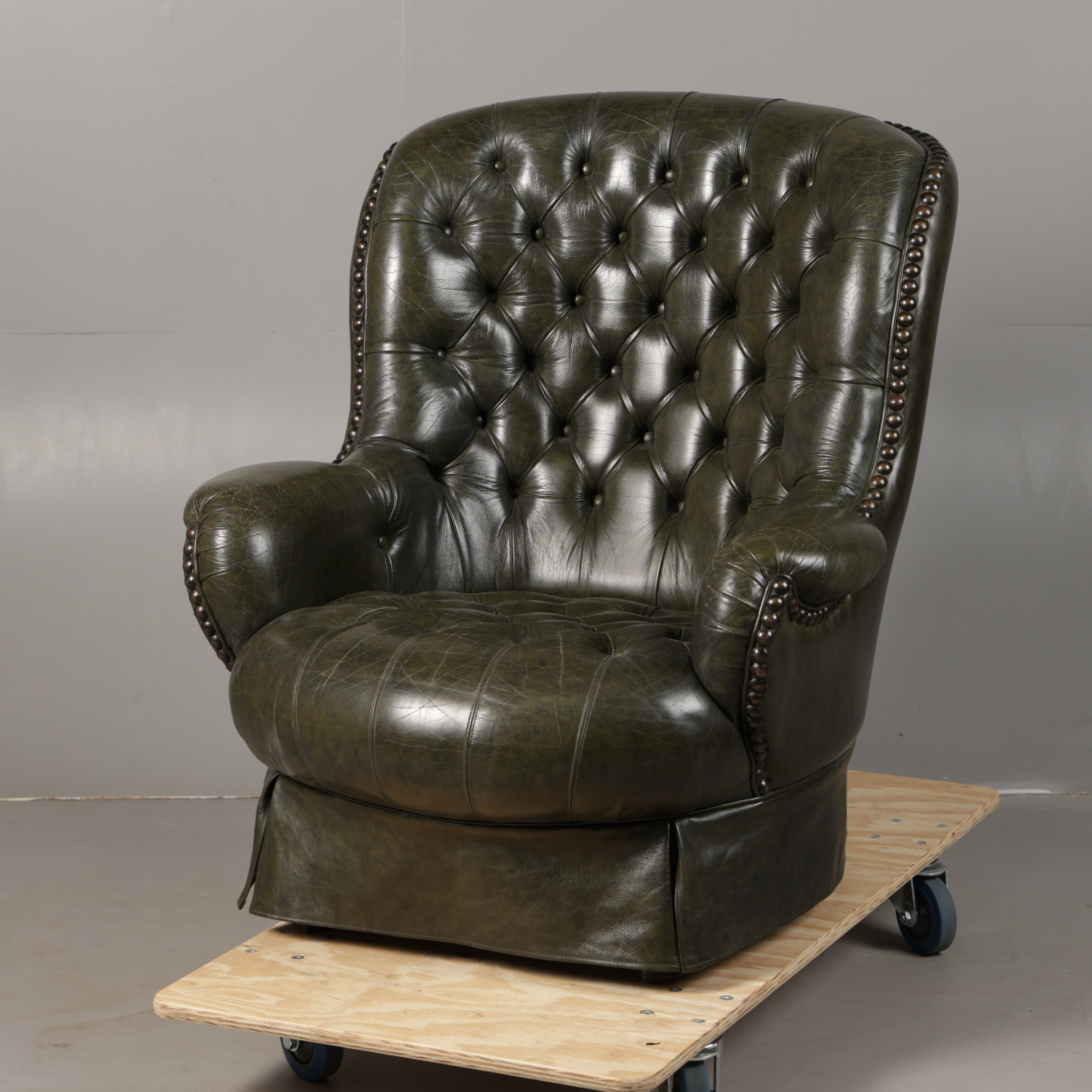 5008759. A GREEN LEATHER BUTTON DOWN ARMCHAIR.