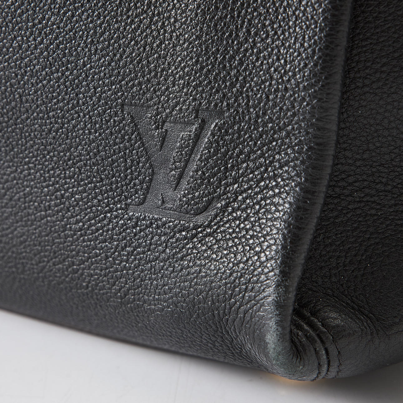 Black embossed leather, detachable shoulder strap in Python Reticulatus, embossed LV mark, lined in black alcantara, interior with three pockets, one with zipper, marked "Louis Vuitton Paris made in France", dimensions approx. 43 x 17 x 36 cm.