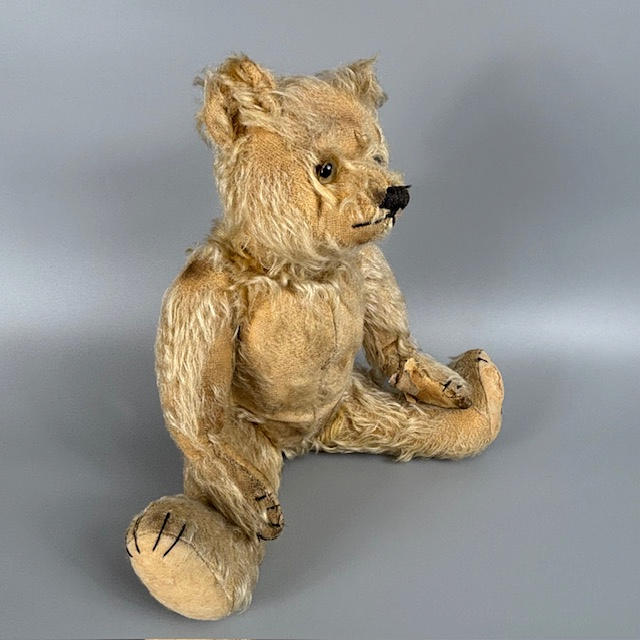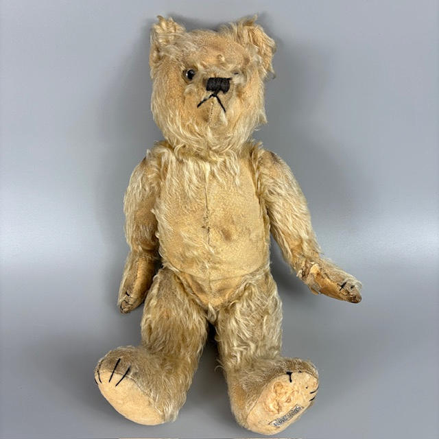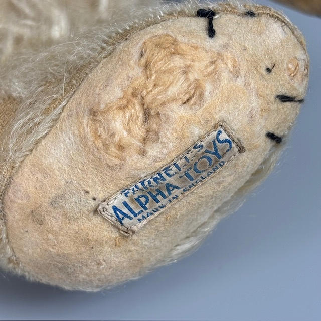 Early 20th century mohair teddy bear by Alpha Toys, approximately 42cm tall, stitched nose, tag to foot.