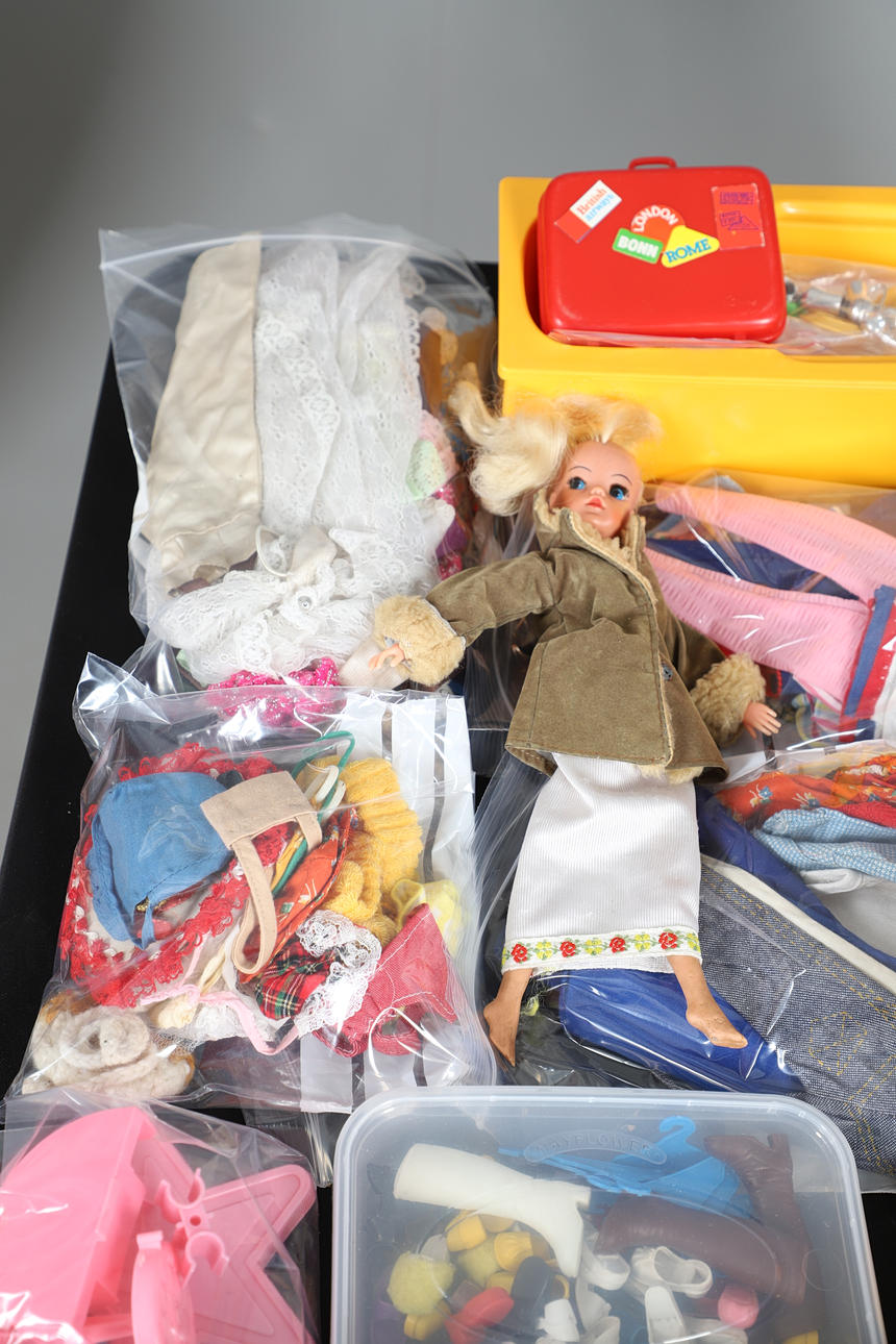 ASSORTED SINDY DOLLS AND ACCESSORIES.