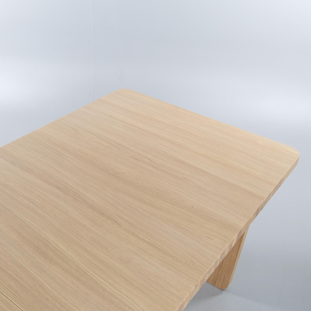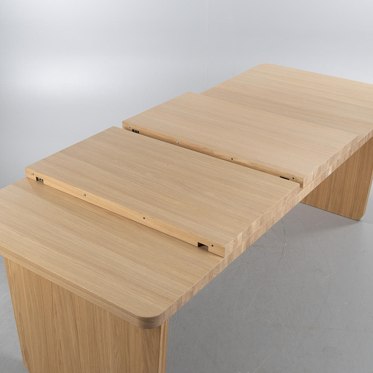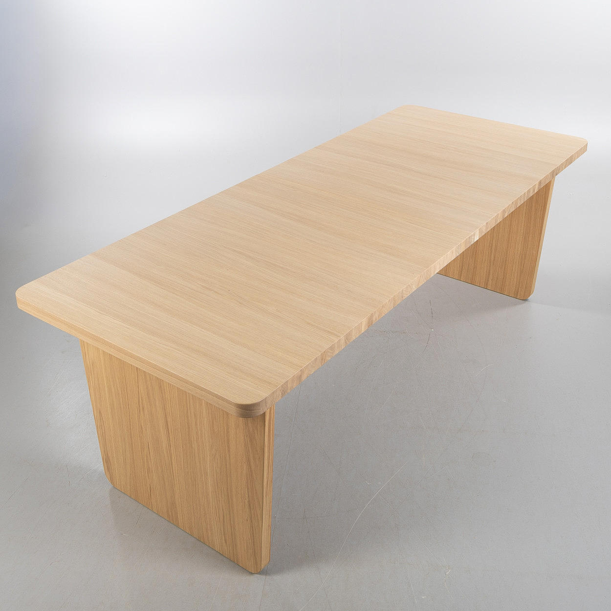 Oak and oak veneer, 2 boards a 50 cm, height 74.5, 220x90 cm.