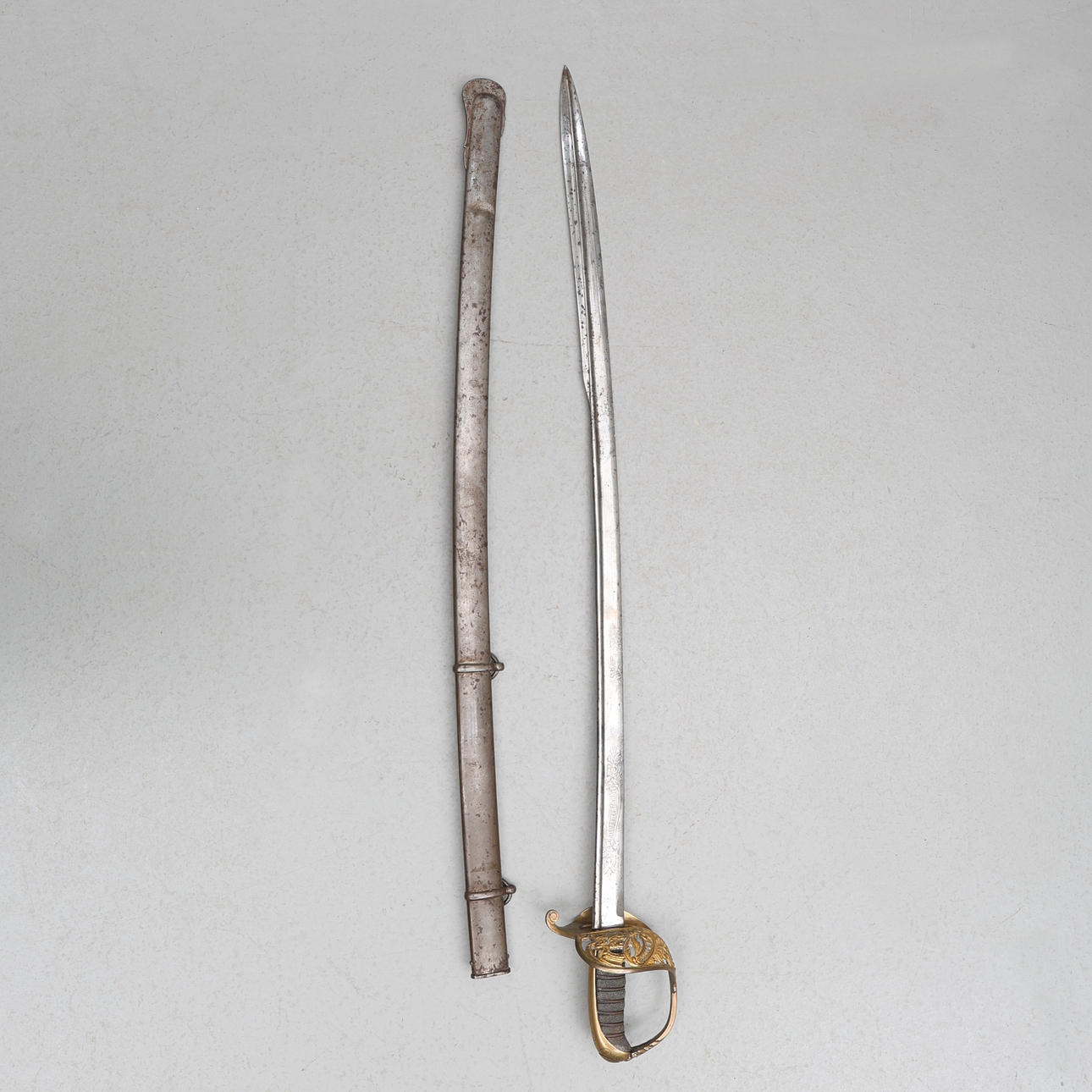 For officer of the Infantry, gilded and engraved decoration of the Fatherland. Length of saber about 92cm Total length including tub approx 94cm.