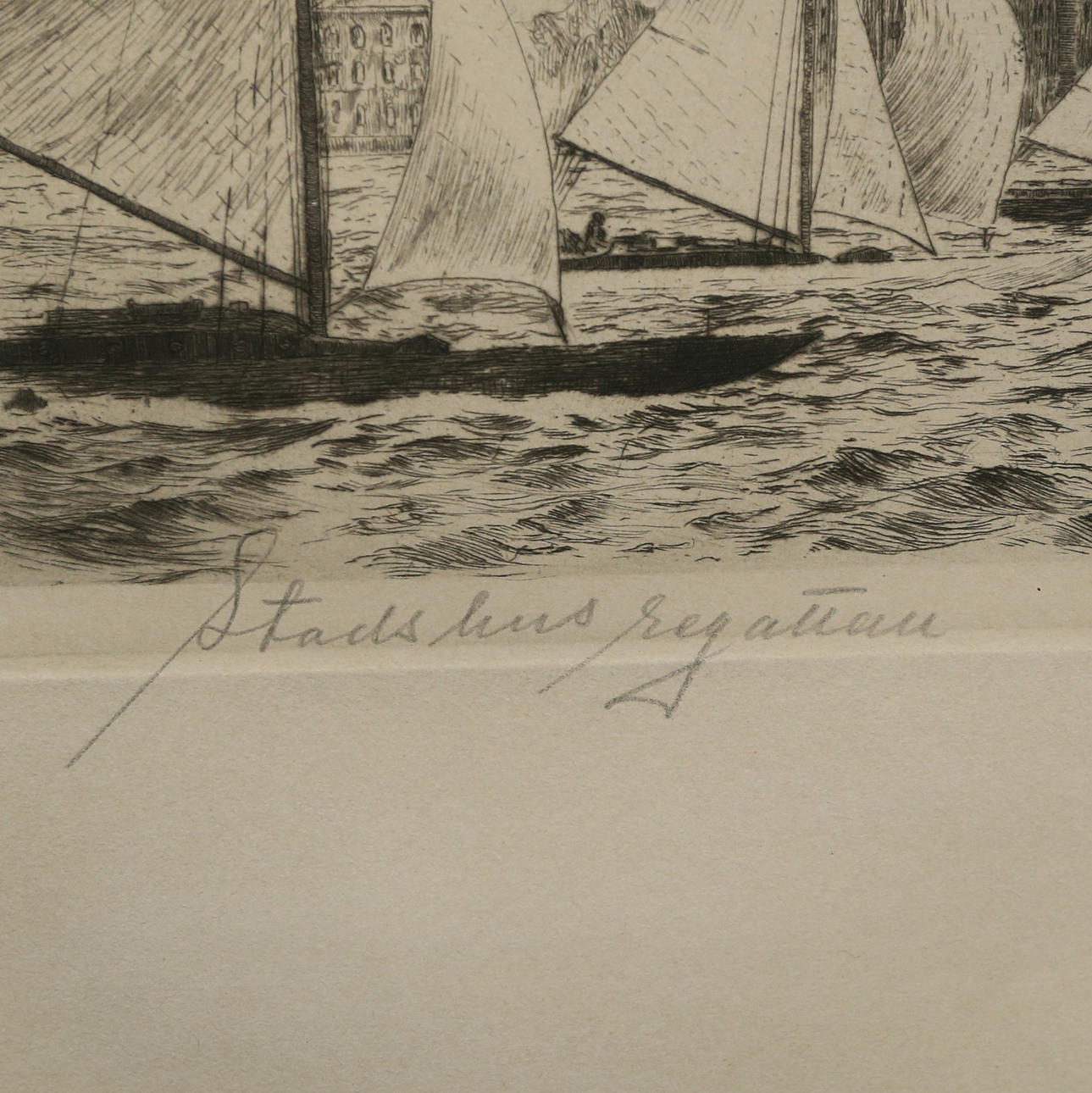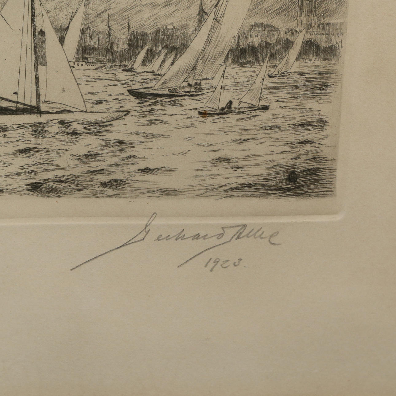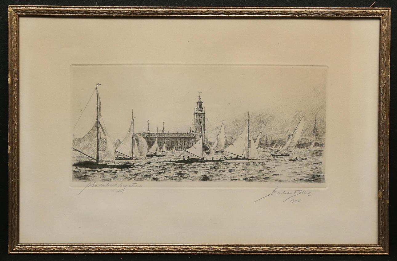 GERHARD ALBE. Etching, “Stadshusregattan”, signed and dated 1923.