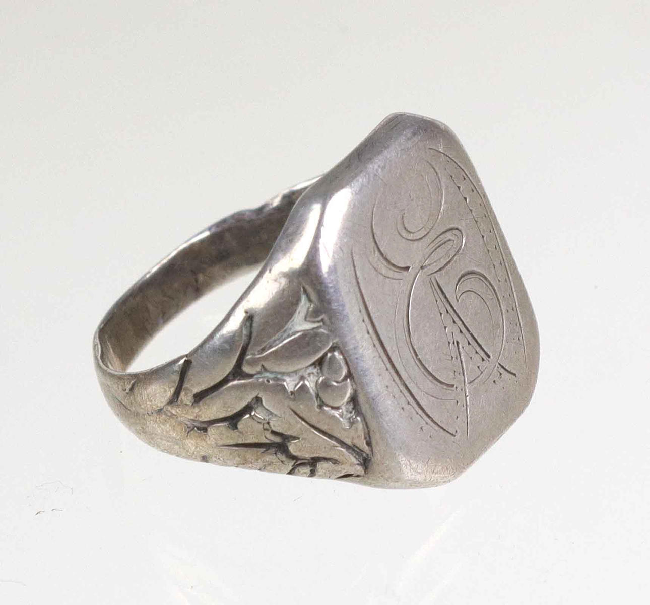 5009123. ANTIQUE MEN'S RING WITH MONOGRAM, 830 Silver.