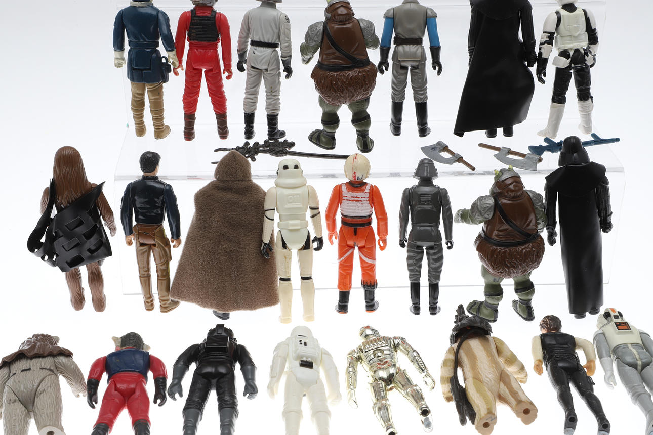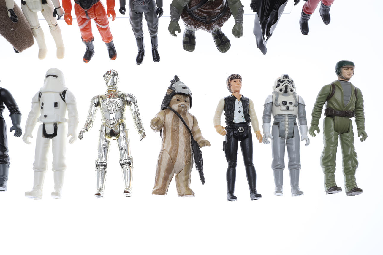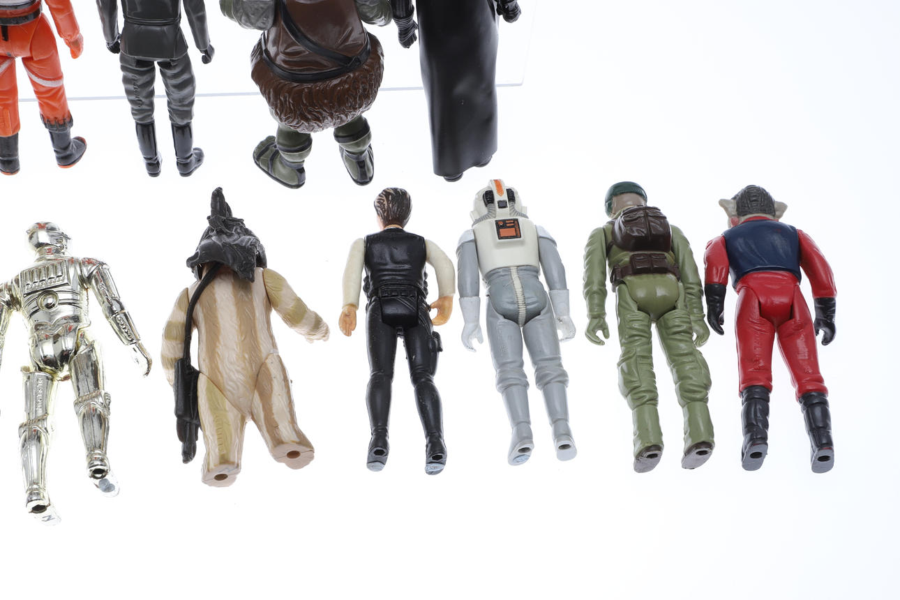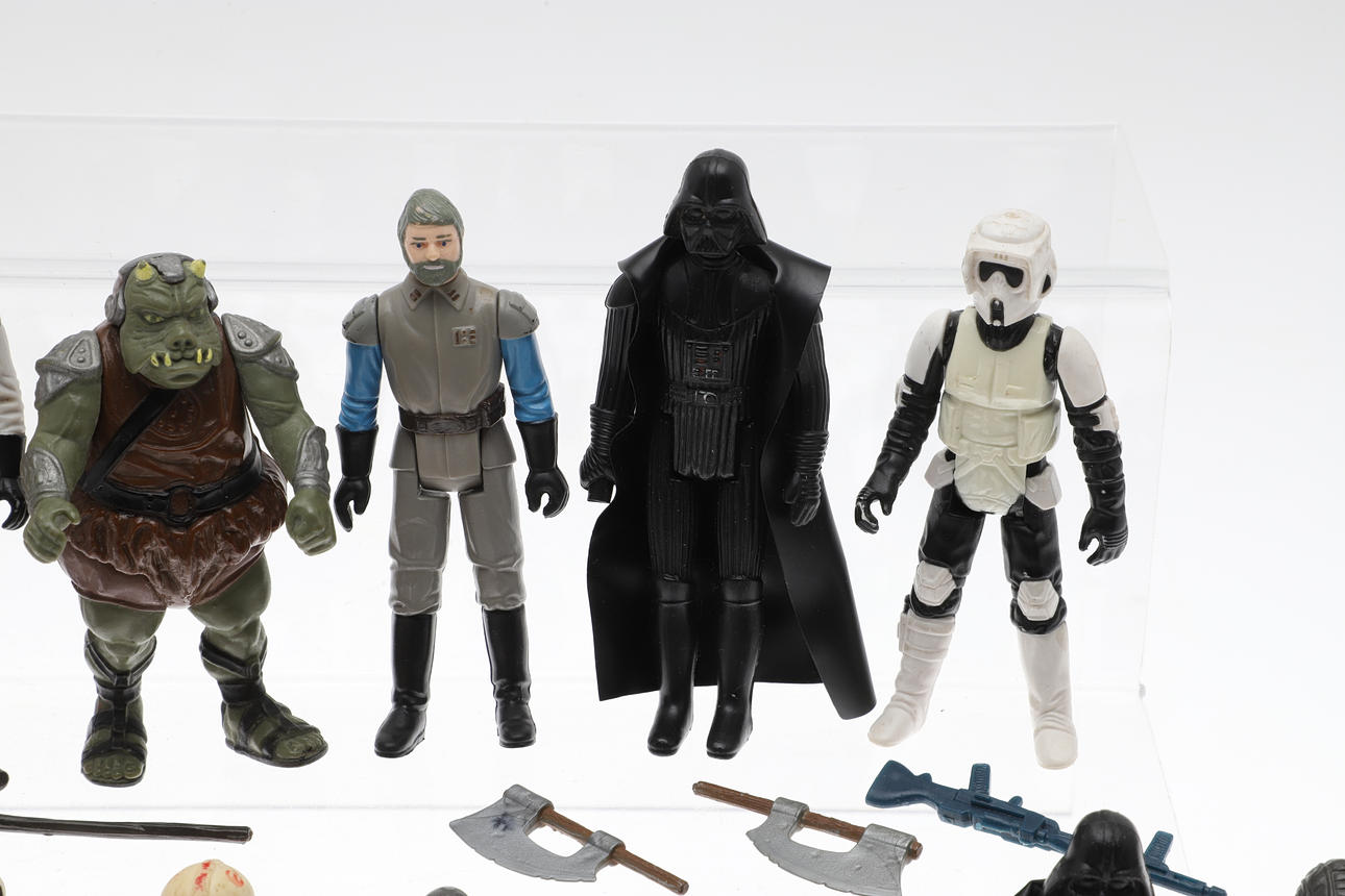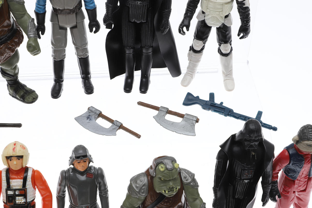 Various Star Wars figures including a few weapons, roughly 20 figures included.