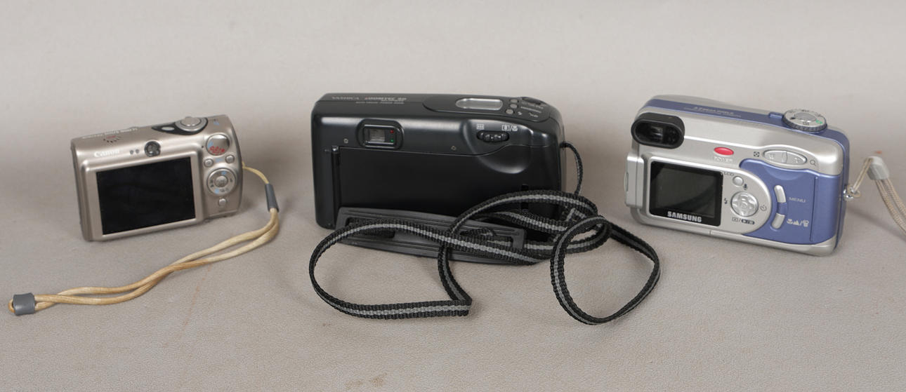 To include a Canon Digital IXUS 900Ti Titanium, serial number 3138095350, Samsung Digimax 350SE, serial number 12202366, Yashica Zoomtec 90 Super, serial number 191086. (3).
