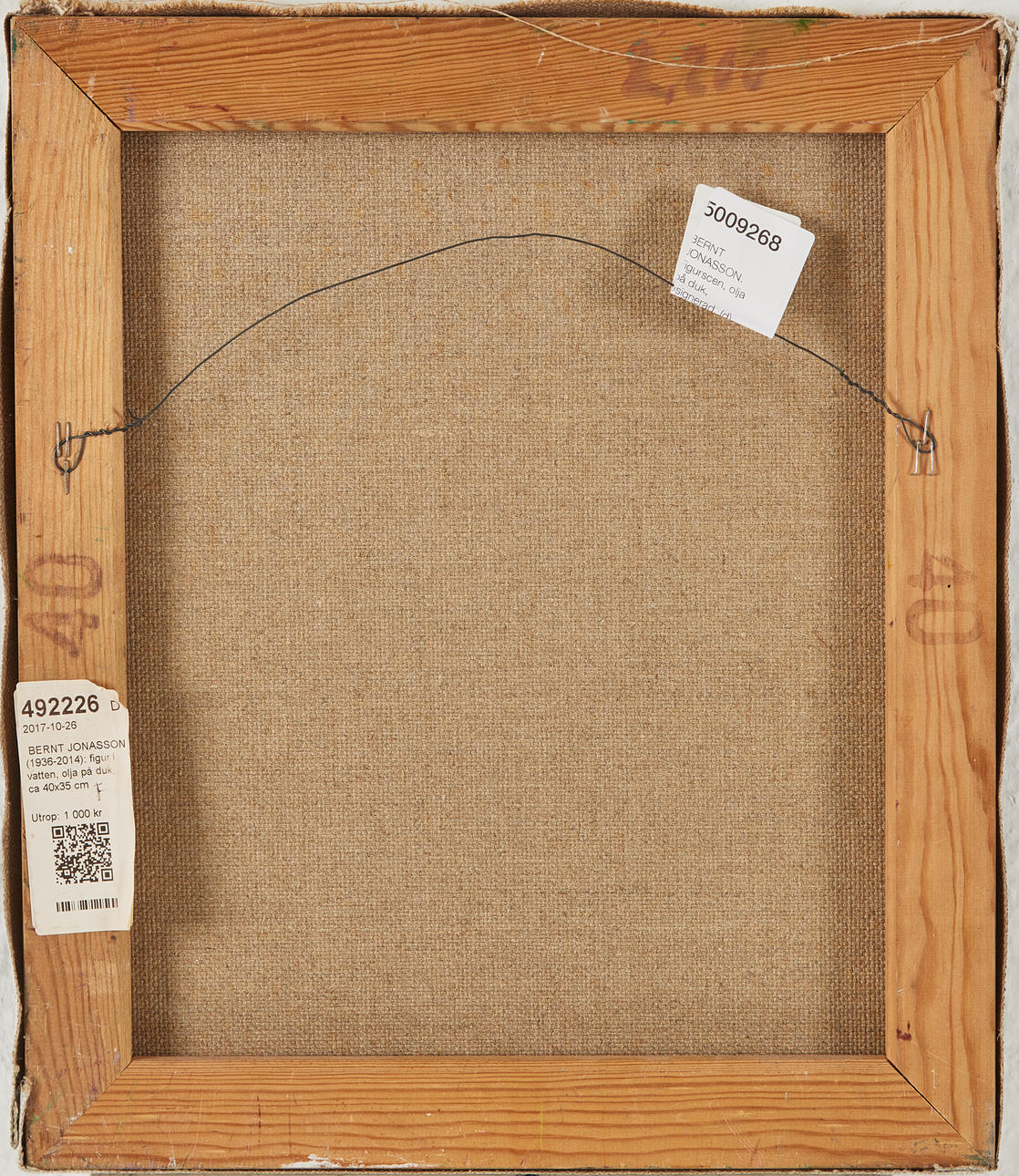 5009268. BERNT JONASSON. Figure scene, oil on canvas, unsigned.