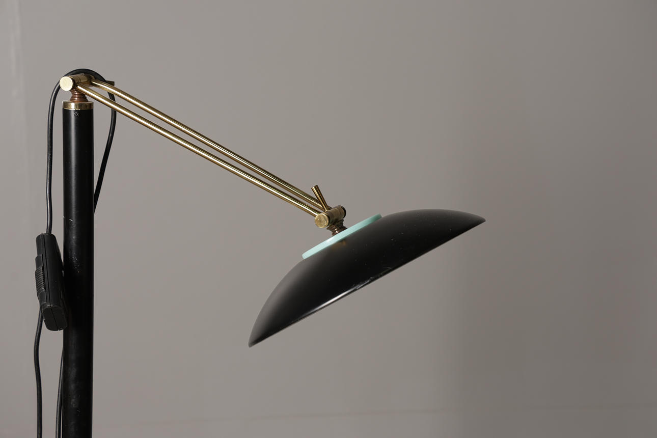 A BLACK LACQUERED ADJUSTABLE READING LAMP.