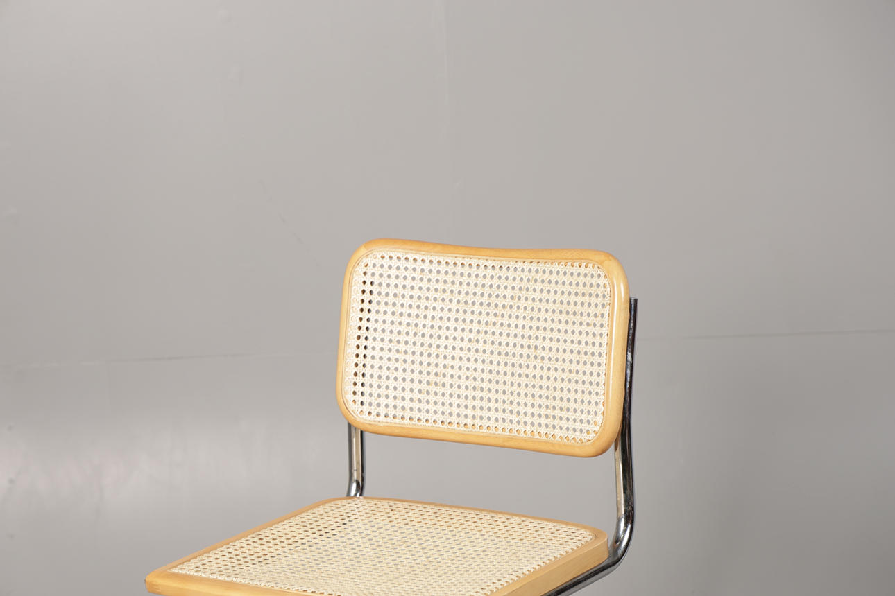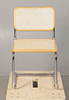 The cane seated and tubular metal cantilever chair, in the style of Marcel Breuer's Cesca Chair, measuring 80.5cm height, 46cm width, 51.5cm depth.