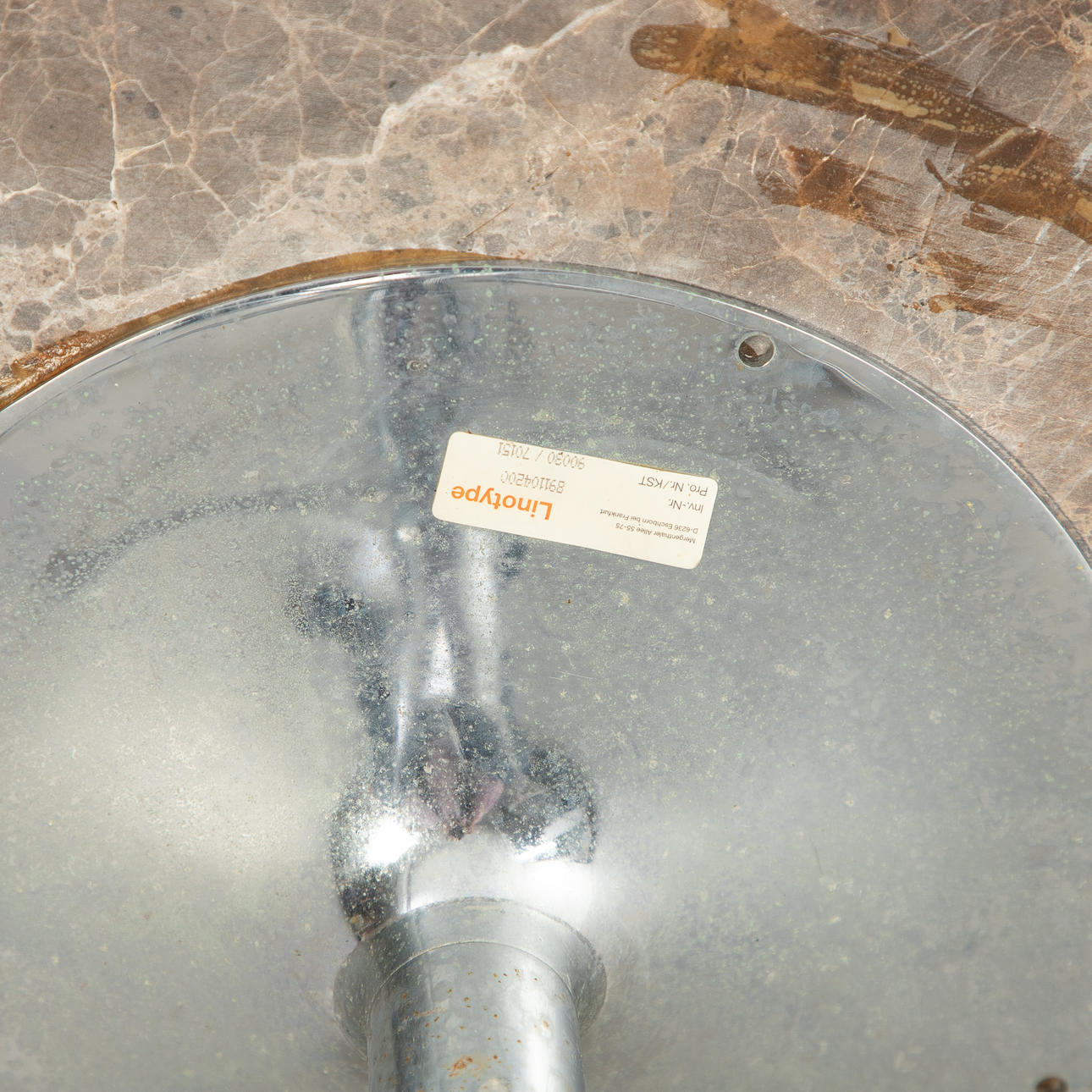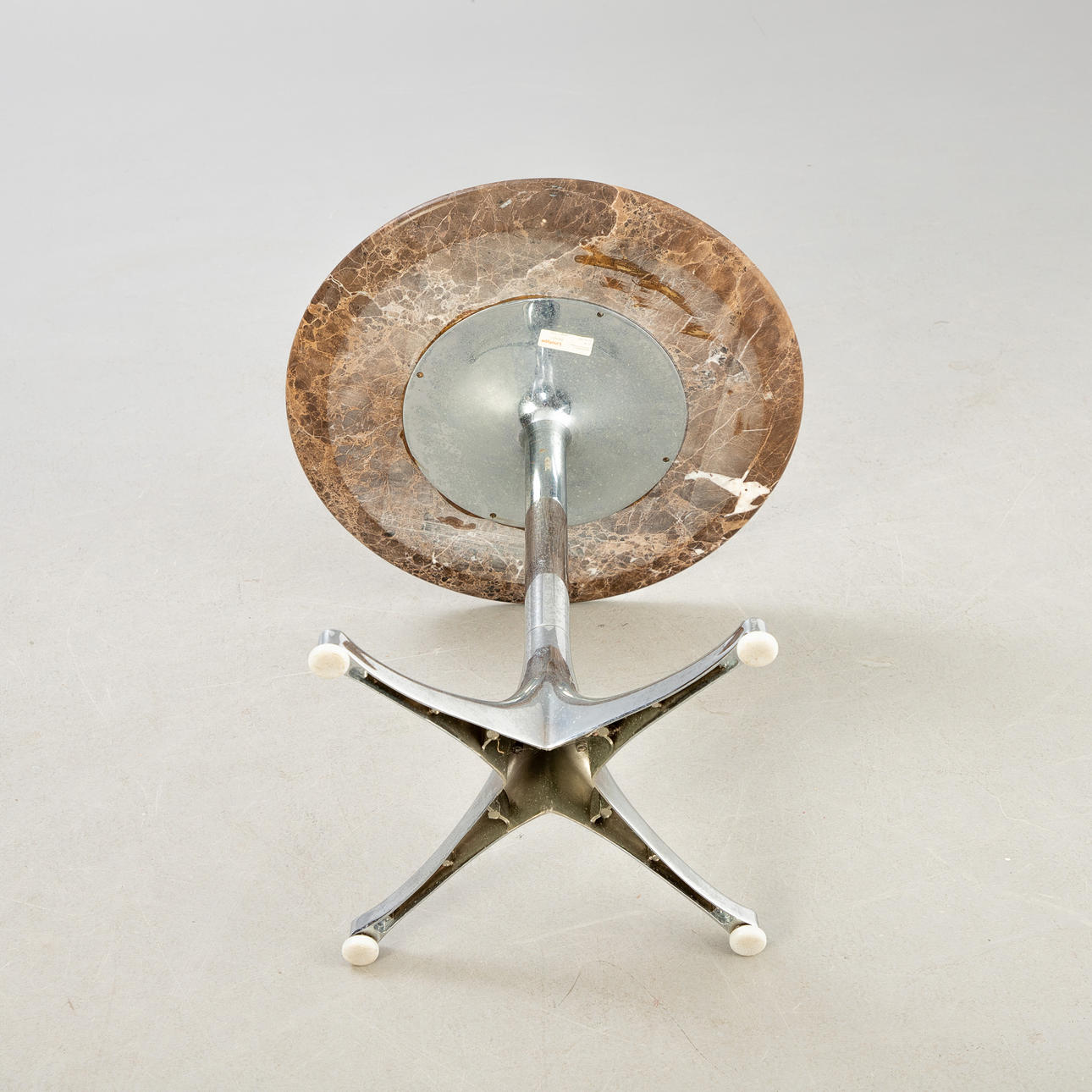 Chrome-plated aluminum base marble slab. cca H. 57 cm x diameter 50 cm.