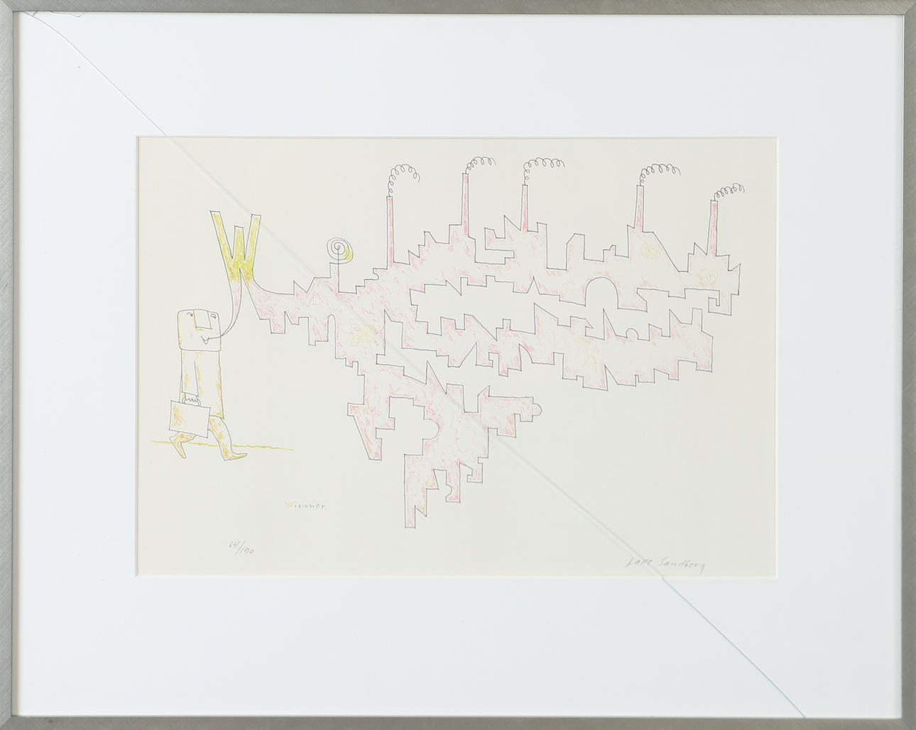 LASSE SANDBERG. “Wisioner”, lithograph in colours, signed.