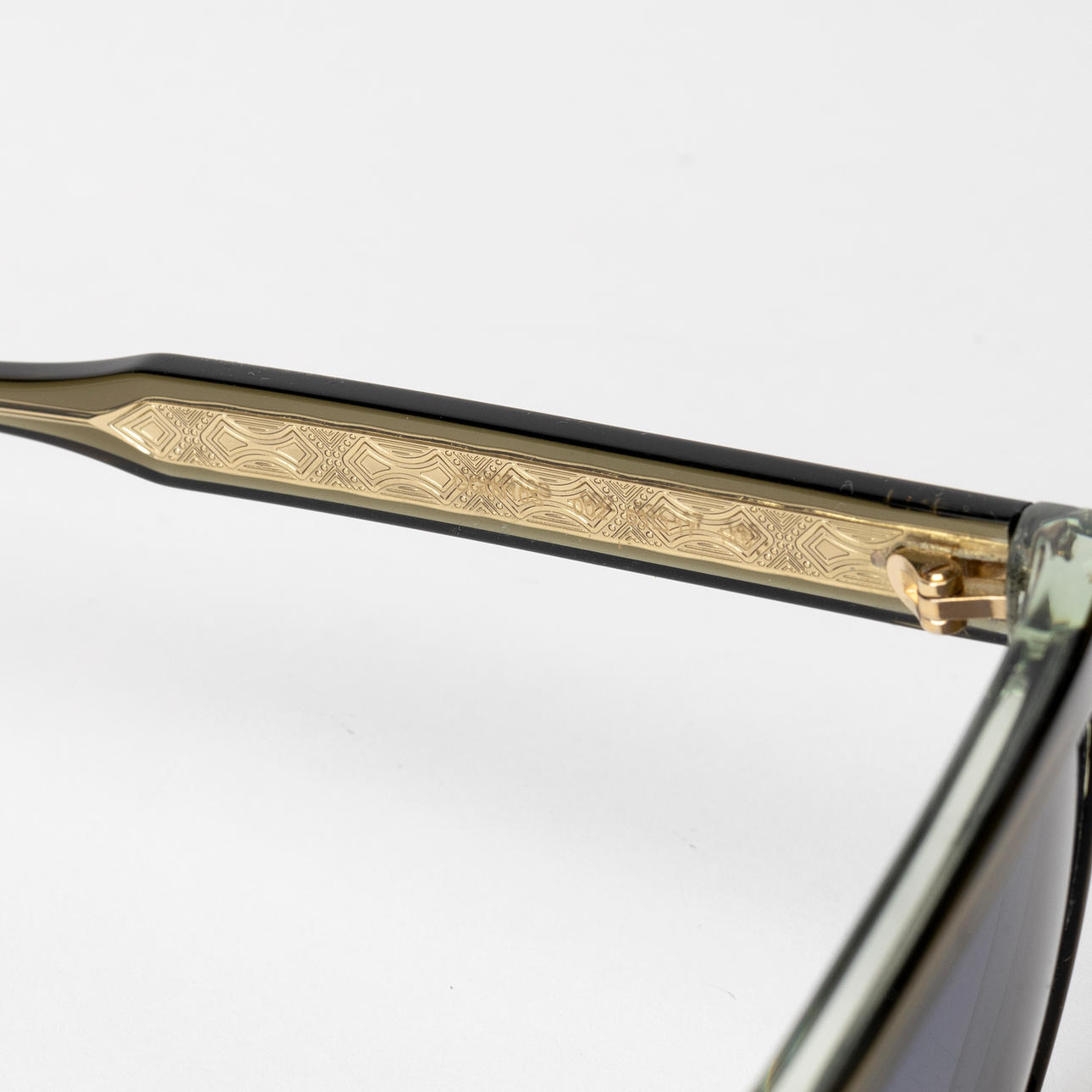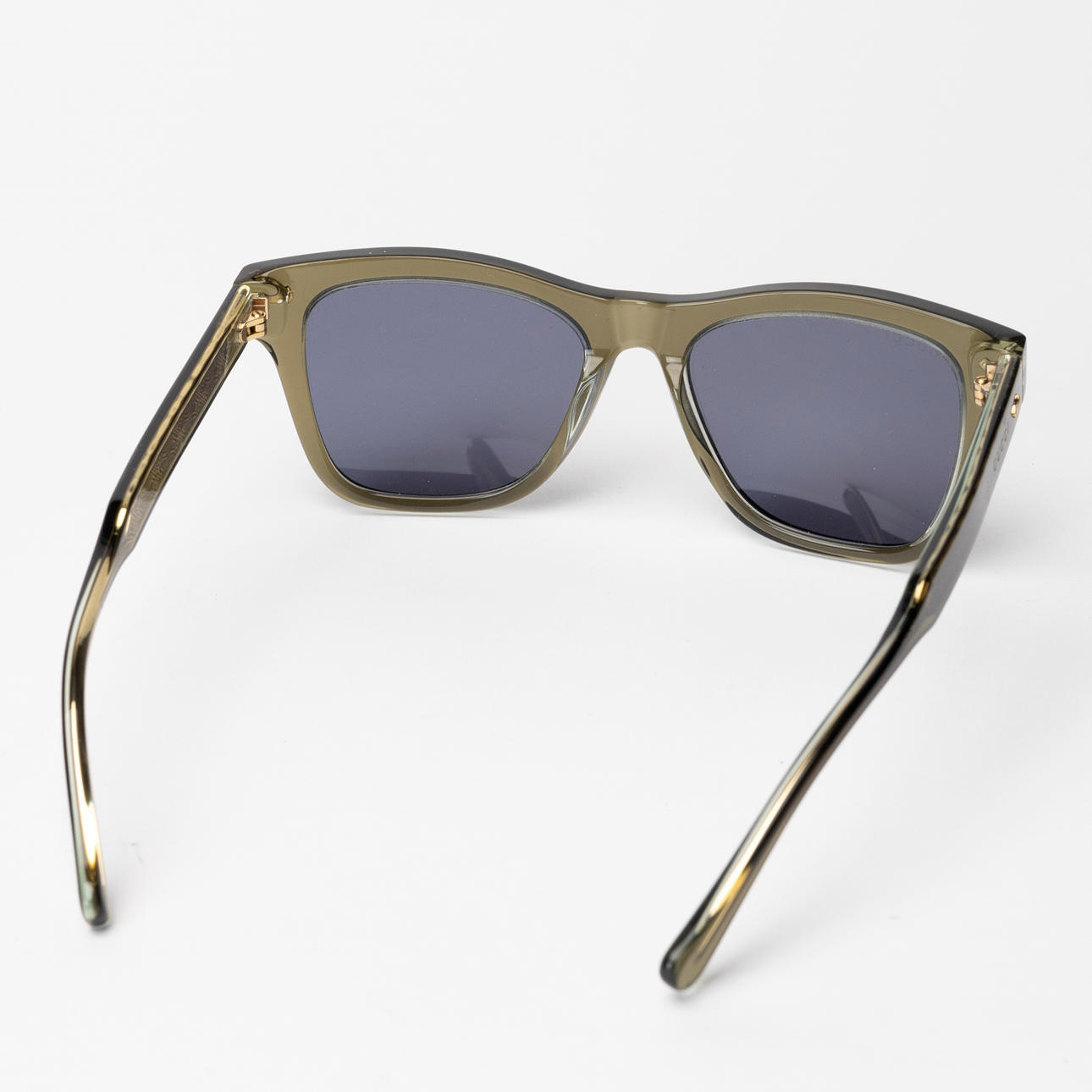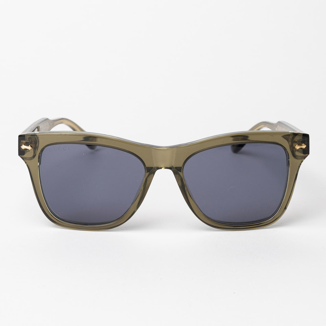 Green plastic shells with blue-tinted glass. Labeled “GUCCI” and “Made in Italy”.