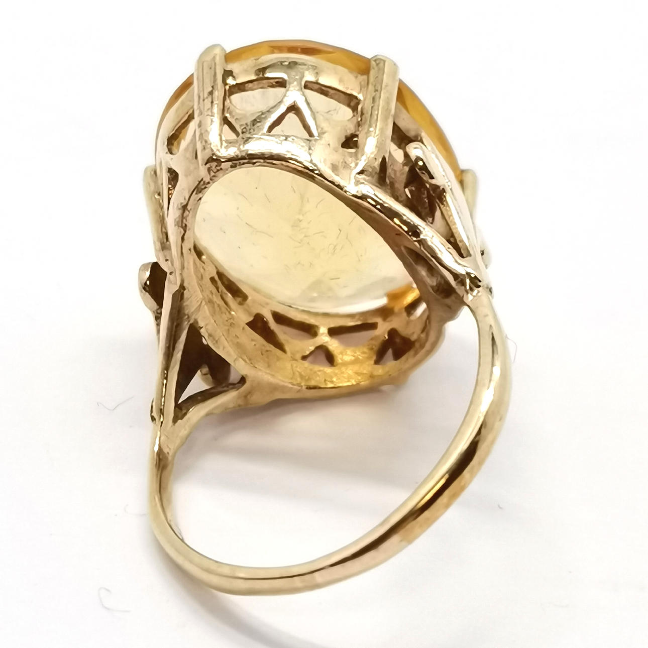 9ct hallmarked gold citrine stone set ring in a high set mount - size L½ & 6g total weight.