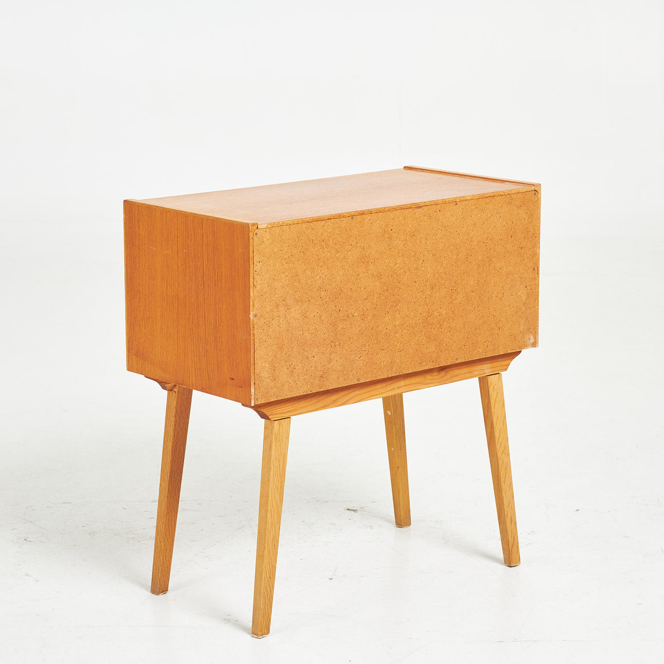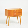 5010092. A 1950s/60s bedside table, veneered in teak, two drawers.