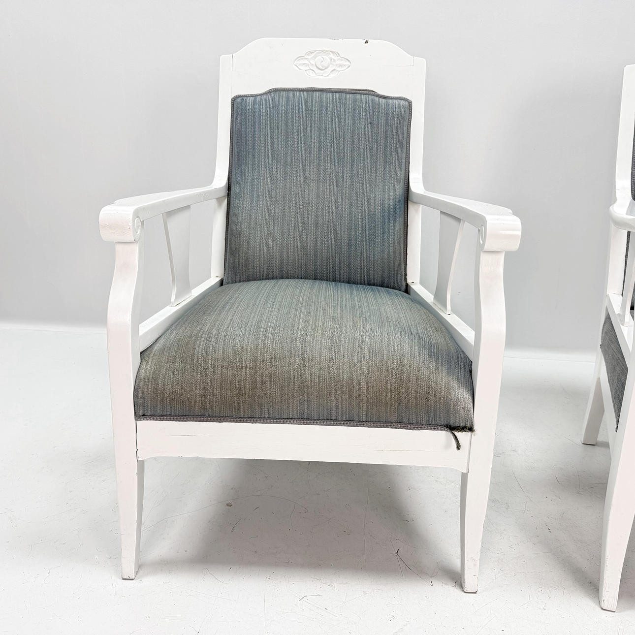 Normal wear and tear Holes on fabric, different shades in fabric due to bleaching.