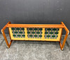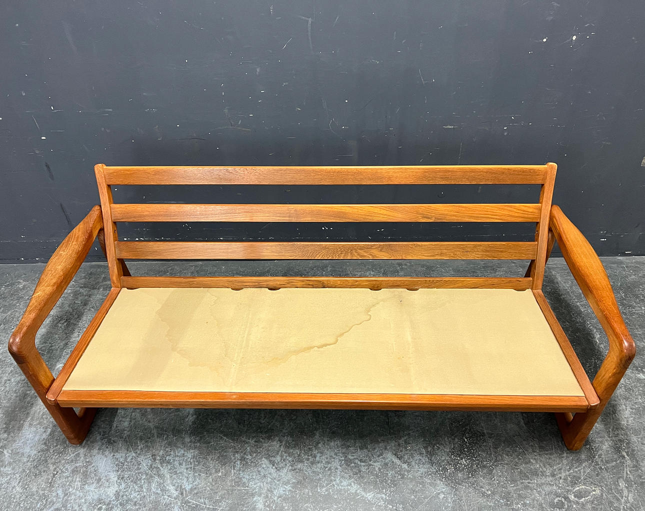 Teak frame with removable cushions.