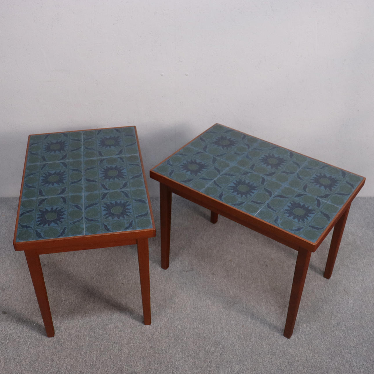 A lamp table, solid teak with tiles, 1960s, 1 pair.