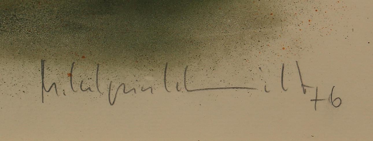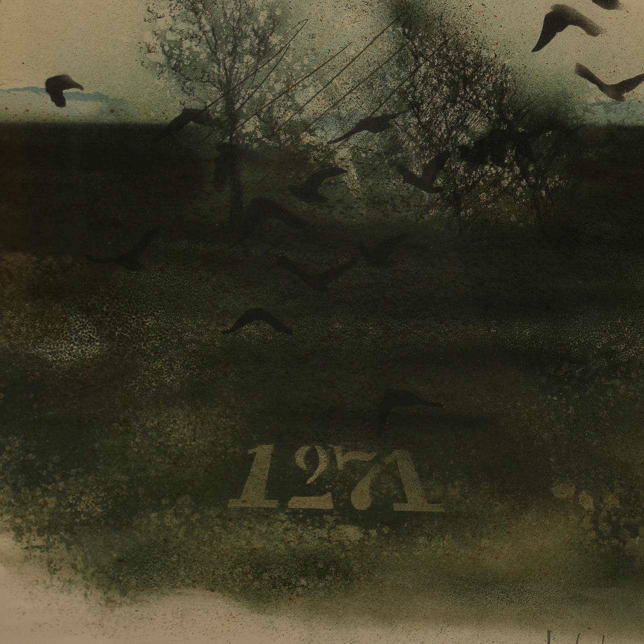 MICHAEL SCHMIDT. Lithograph in colours, composition with birds and arrows, numbered 44/100, signed-76.