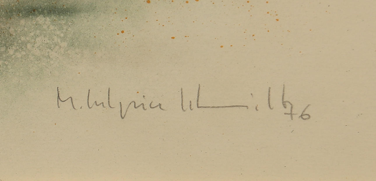 MICHAEL SCHMIDT. Lithograph in colours, composition with birds and chain numbered 38/100, signed-76.