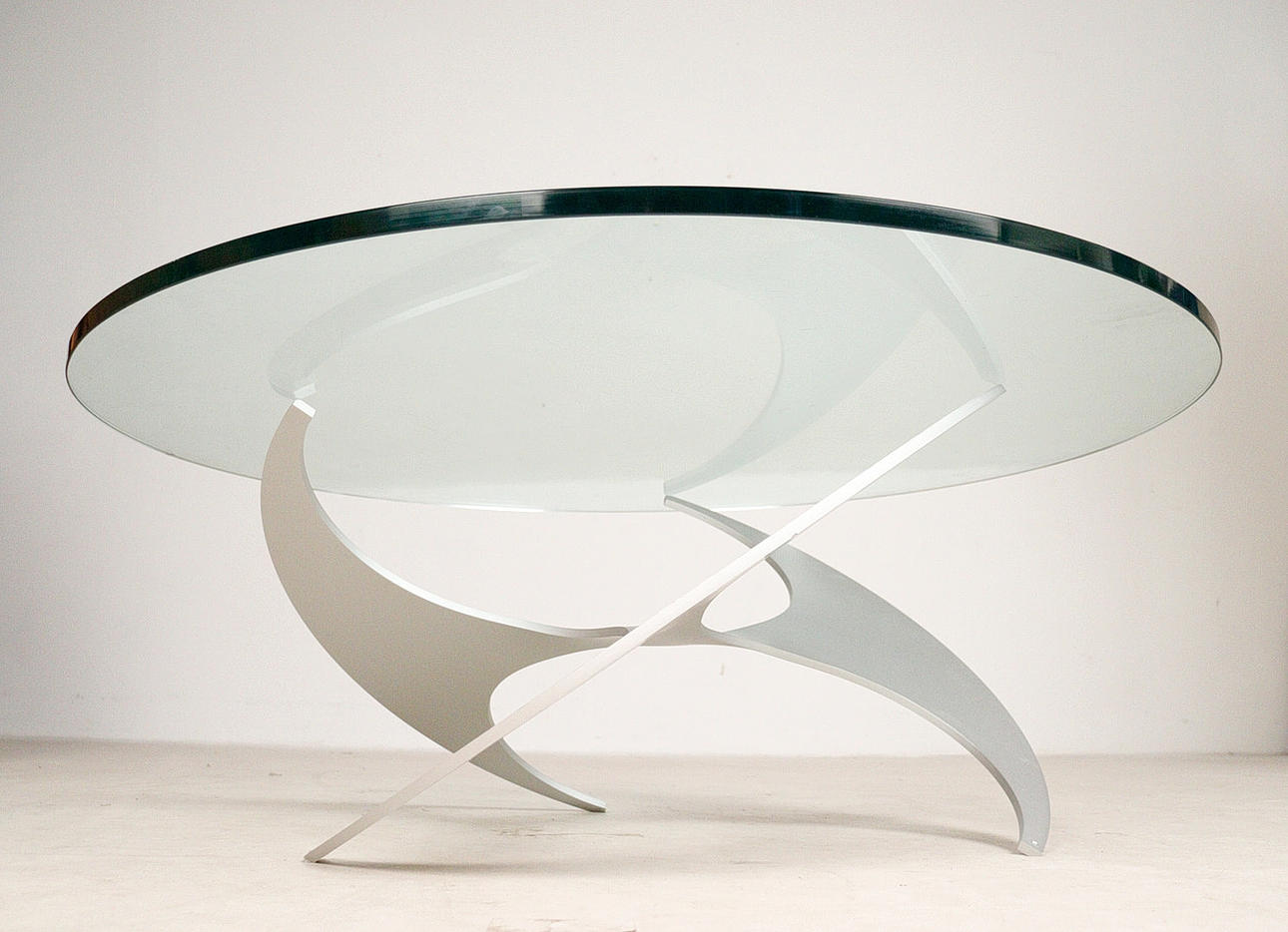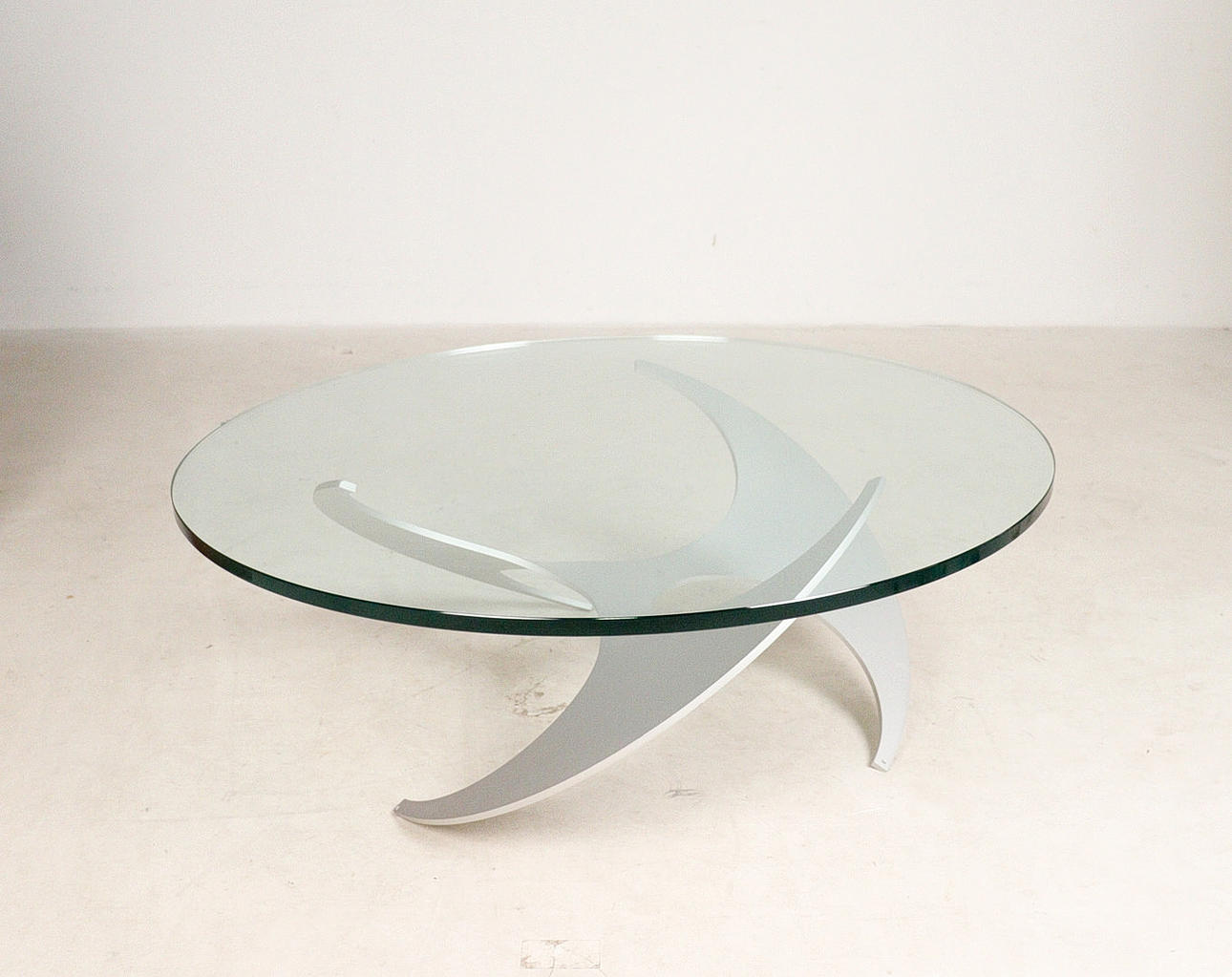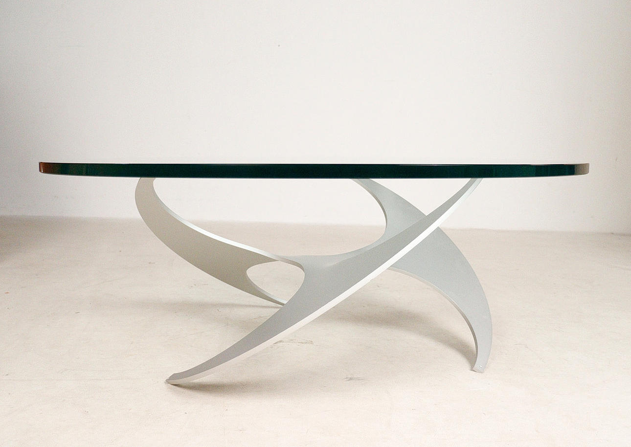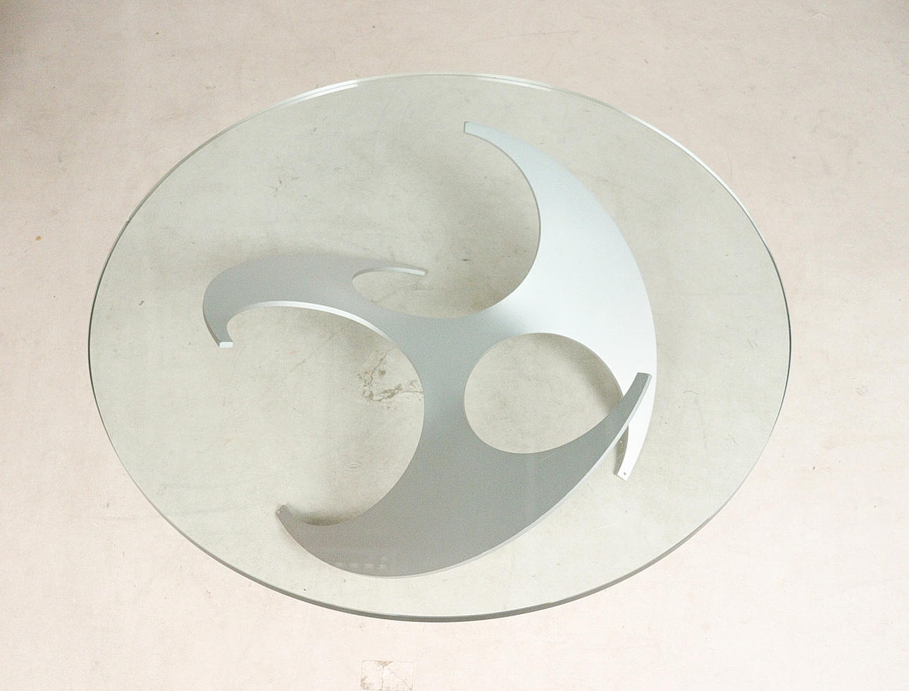 coffee table/coffee table by Knut Hesterberg, Ronald Schmitt, model: Propeller', 1960s, aluminum construction with a solid glass top,