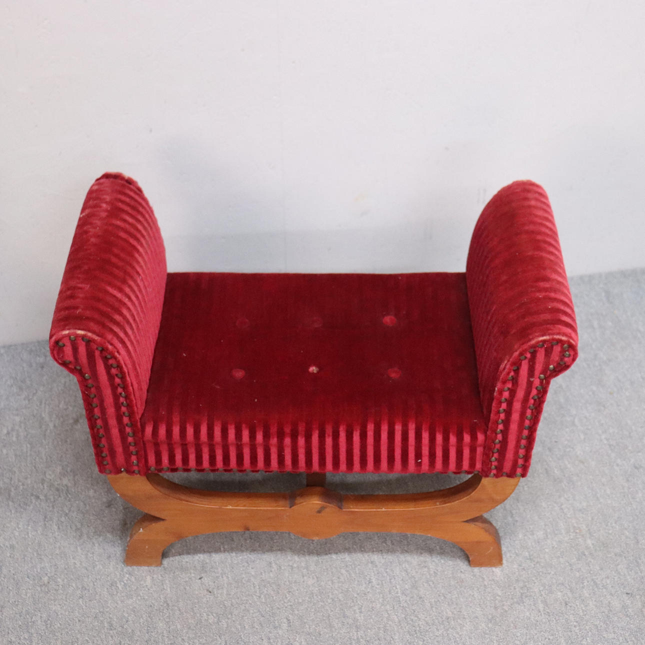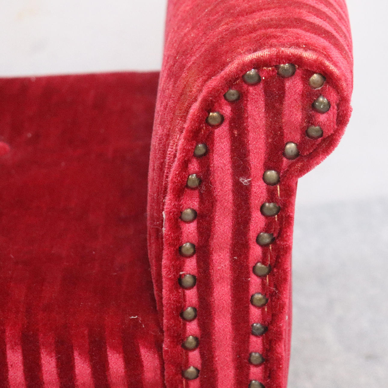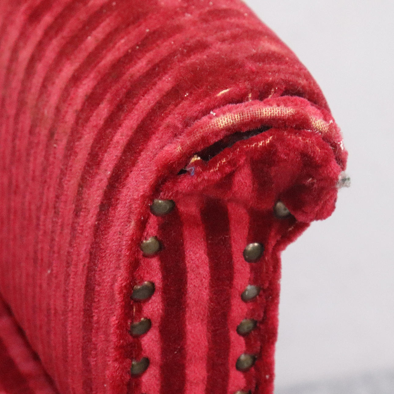 Upholstered upholstery with brass pearl nail decor.