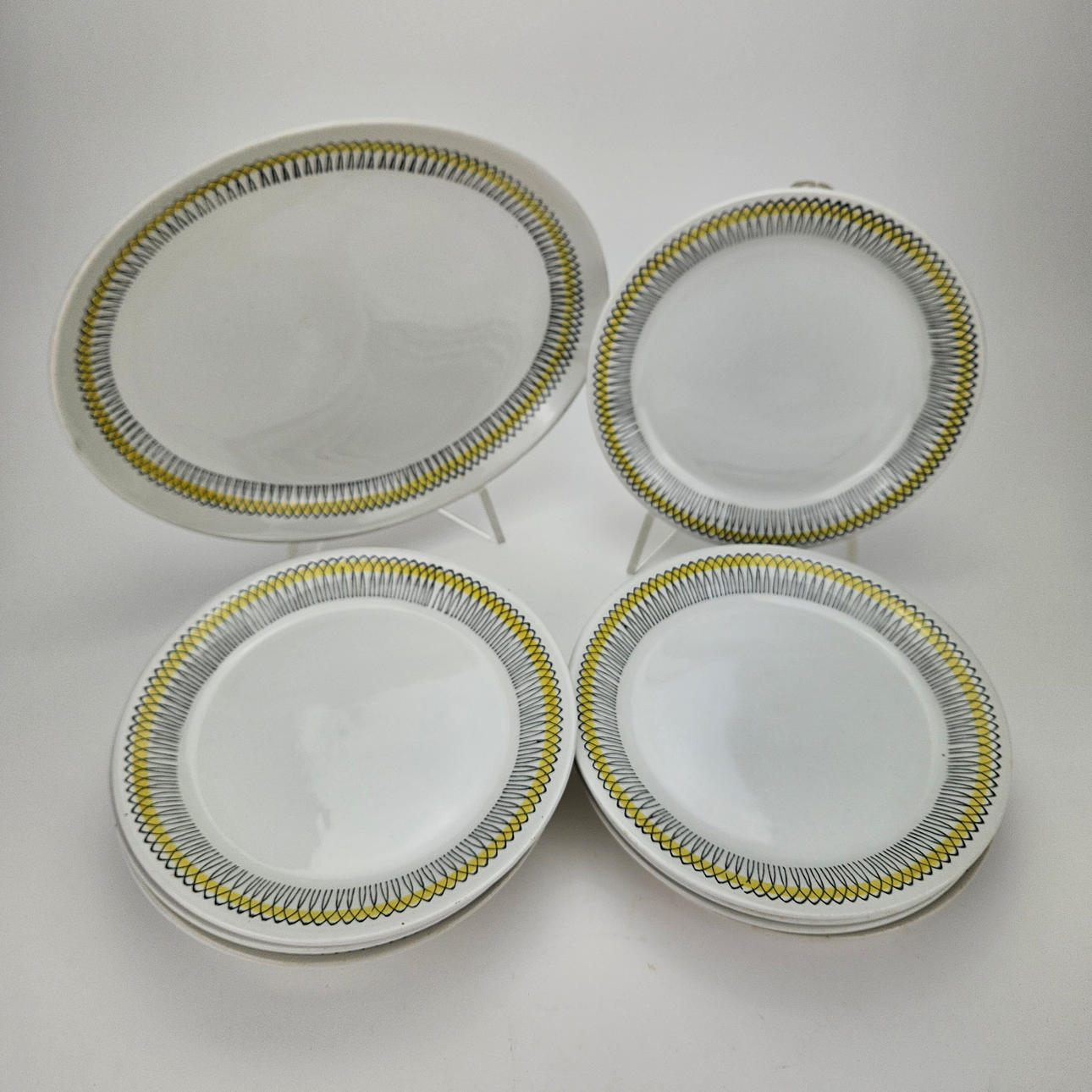 12 plates, diameter approx. 21 cm. Serving dish, length approx. 28.5 cm.