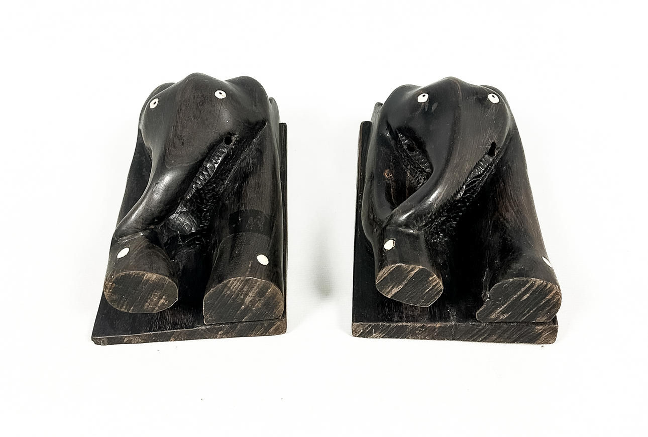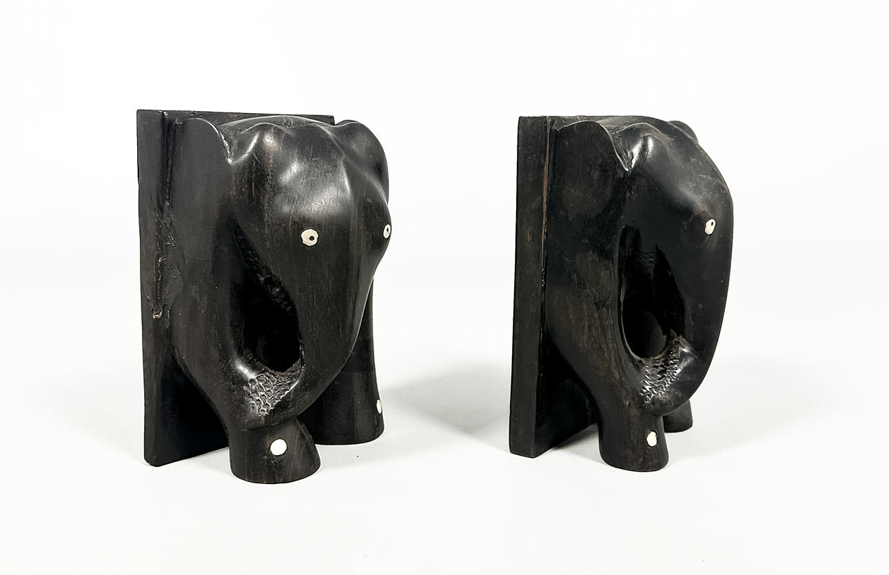 5010546. Bookends, a pair, carved, ebony.