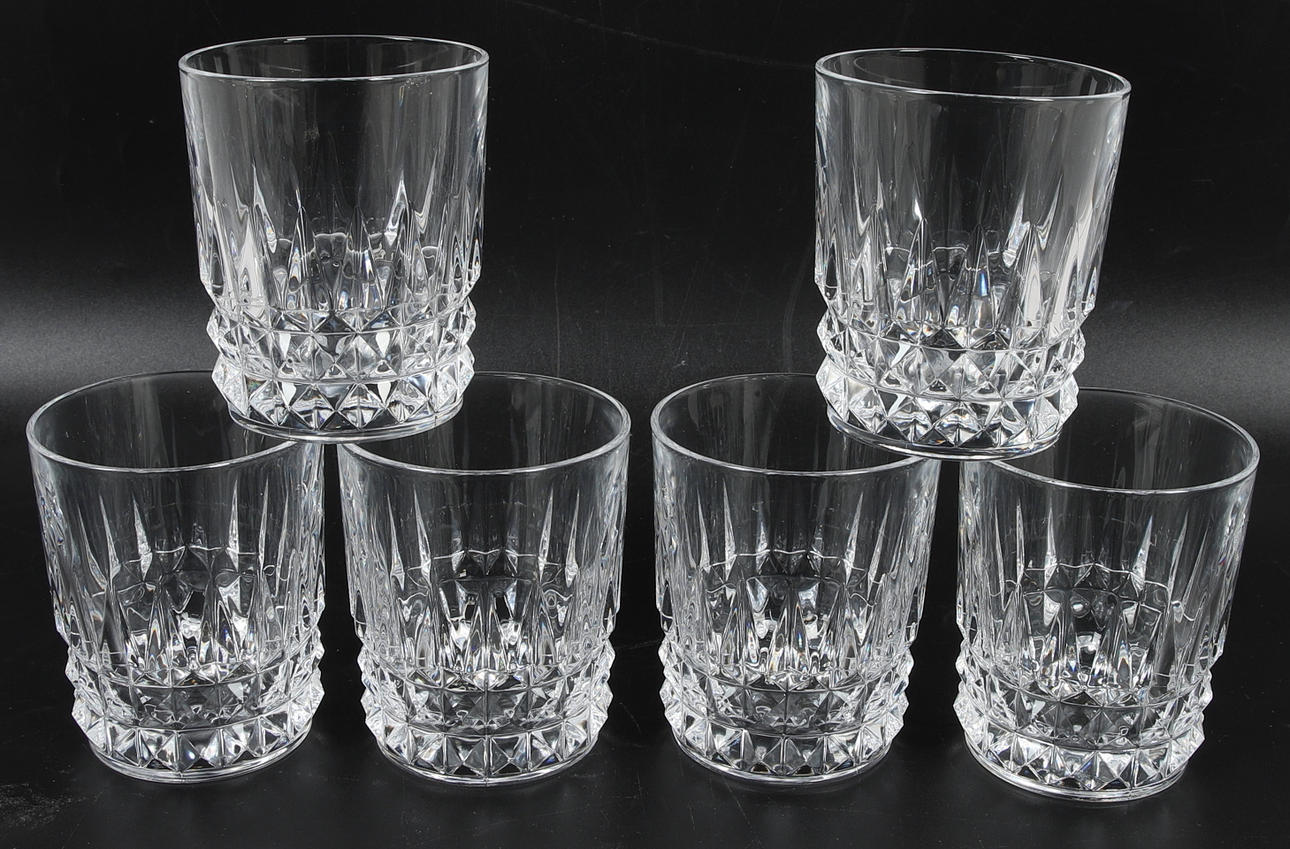 Whiskey glasses 6 pcs, height approx. 7,5 cm, diameter approx. 6 cm.