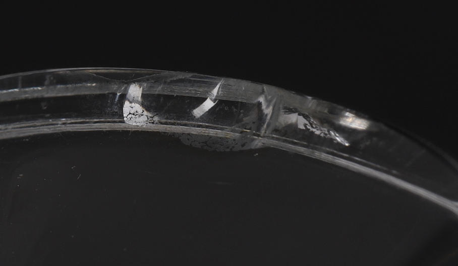 Condition of use. An internal injury to a wine glass foot.