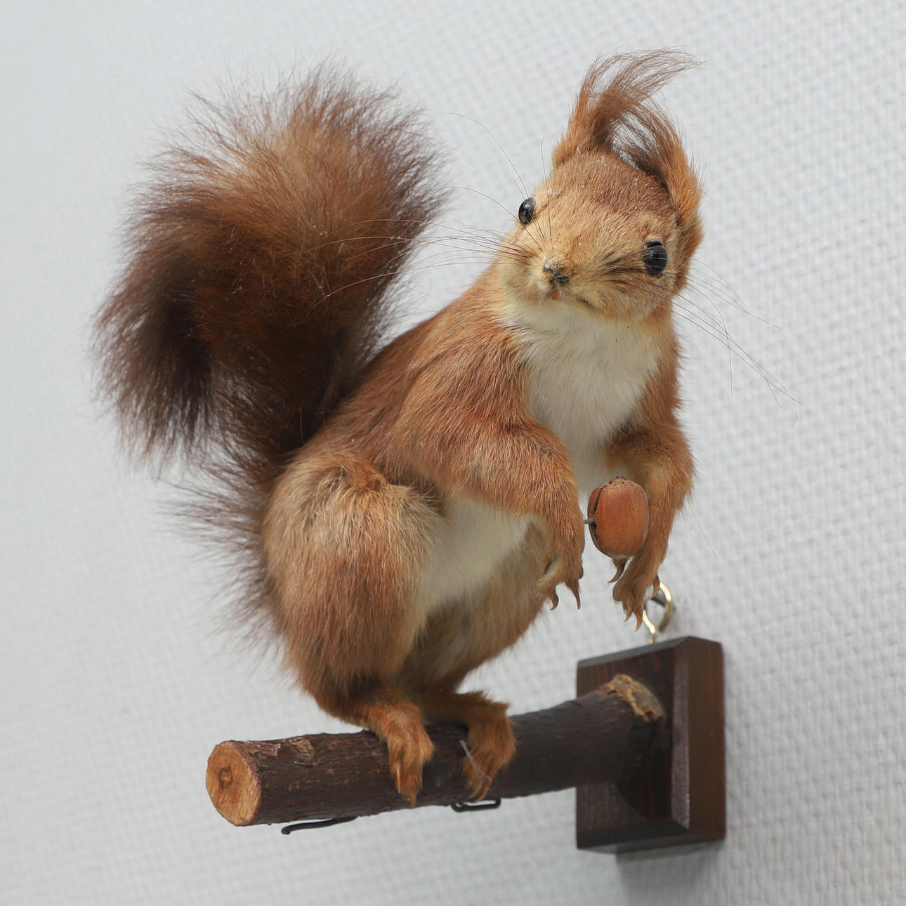 Surface dirt, age wear. The stick slightly oblique, the nut has a crack.
