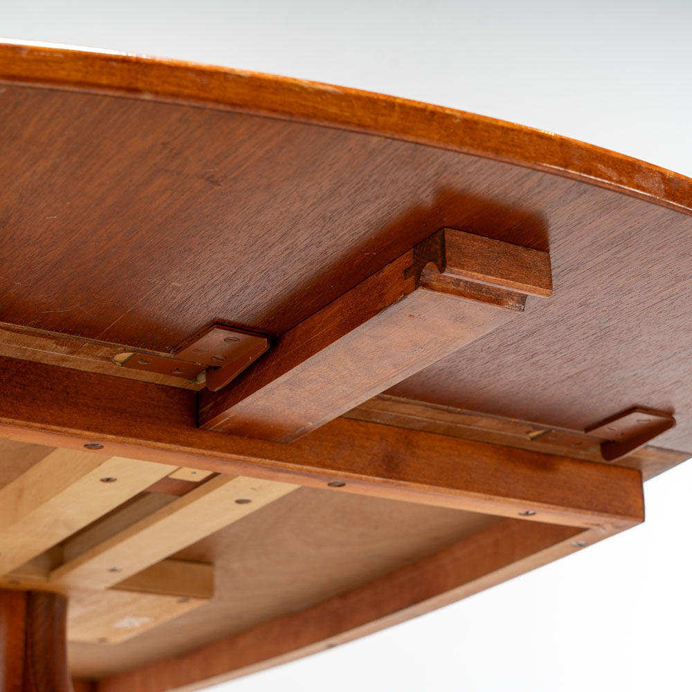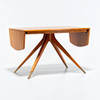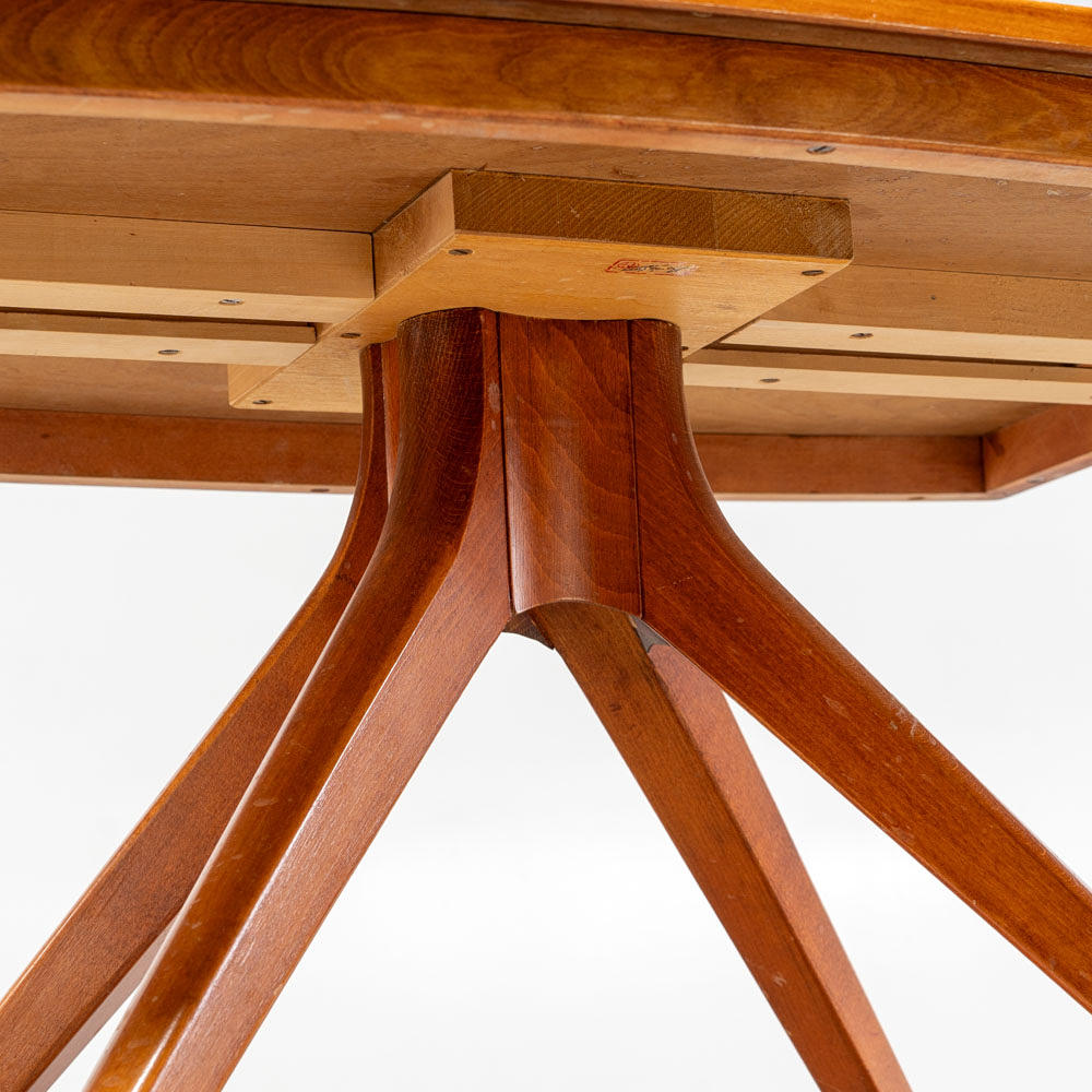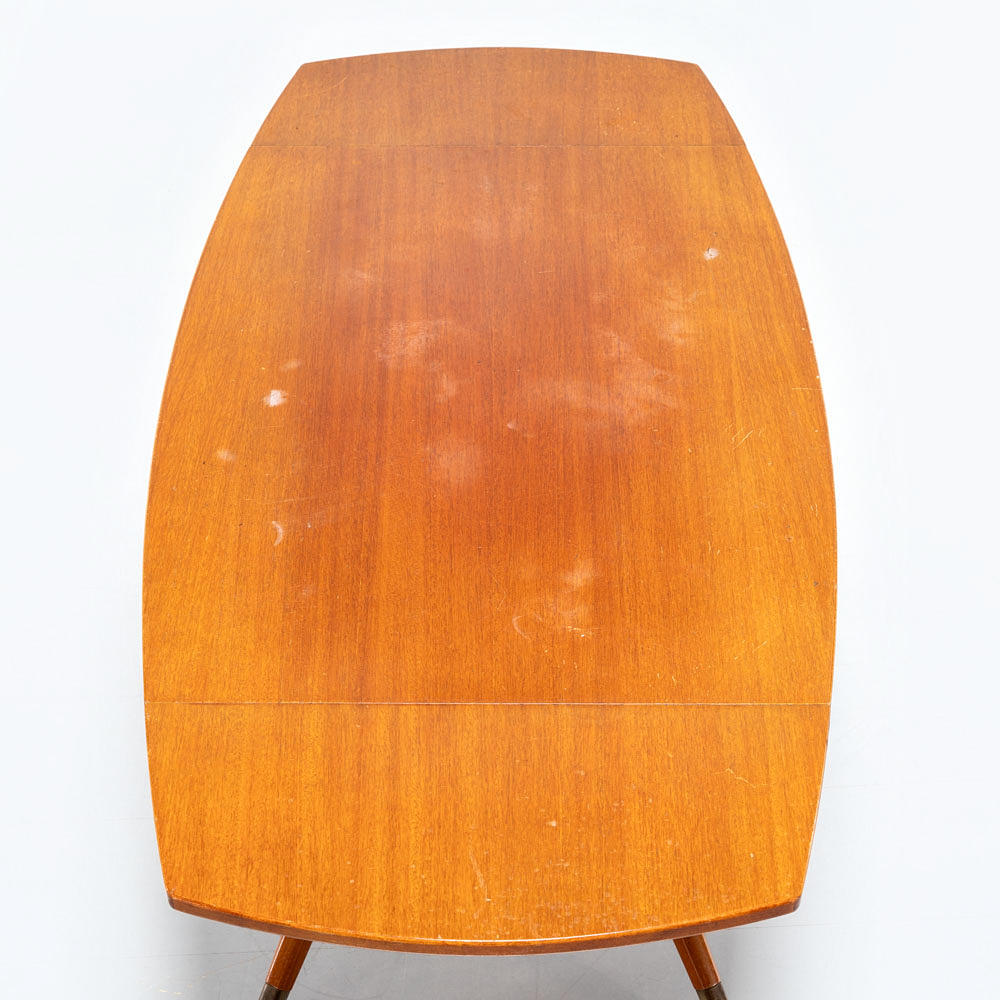 Veneered table with folding flaps. Star-shaped leg stand with metal shod feet.Manufactured by Bodafors in the middle of the 20th century. Design in line with contemporary models by Bertil Fridhagen.