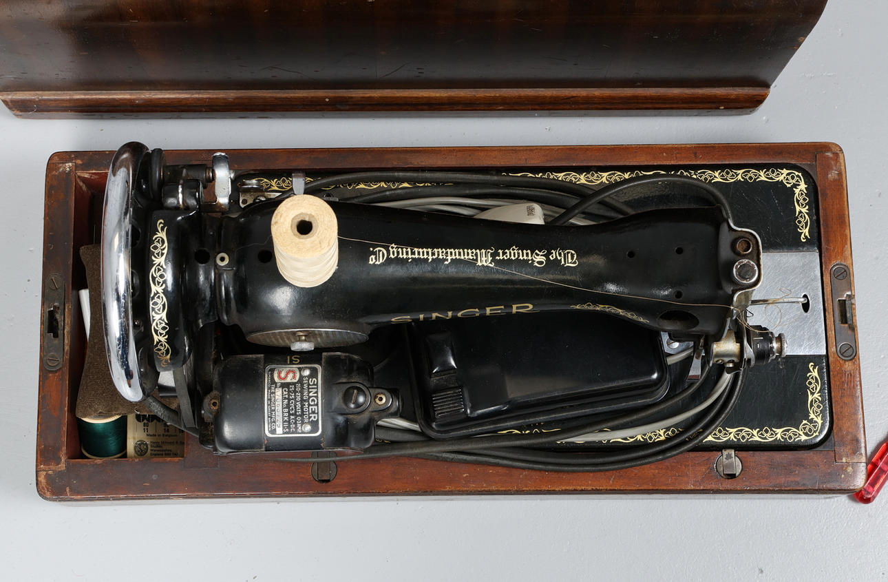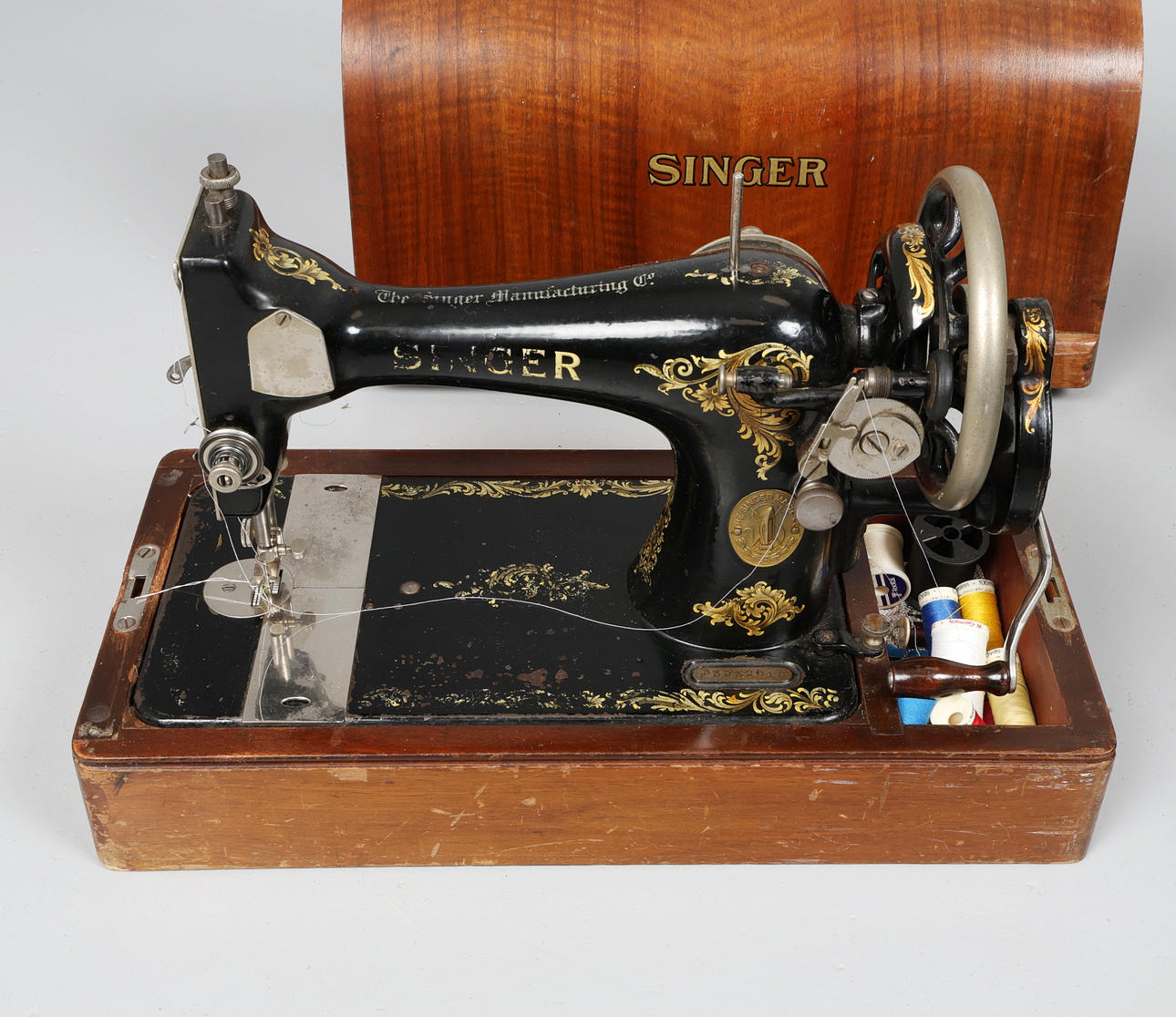 5011111. SINGER MODEL 28K SEWING MACHINE AND A MODEL 15K. (2).
