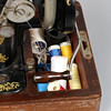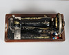 Electric machine untested. Both cases without keys, but locks operate with the screwdriver provided. Cover to 28K with damage around handle. Other marks and wear commensurate with age and use.