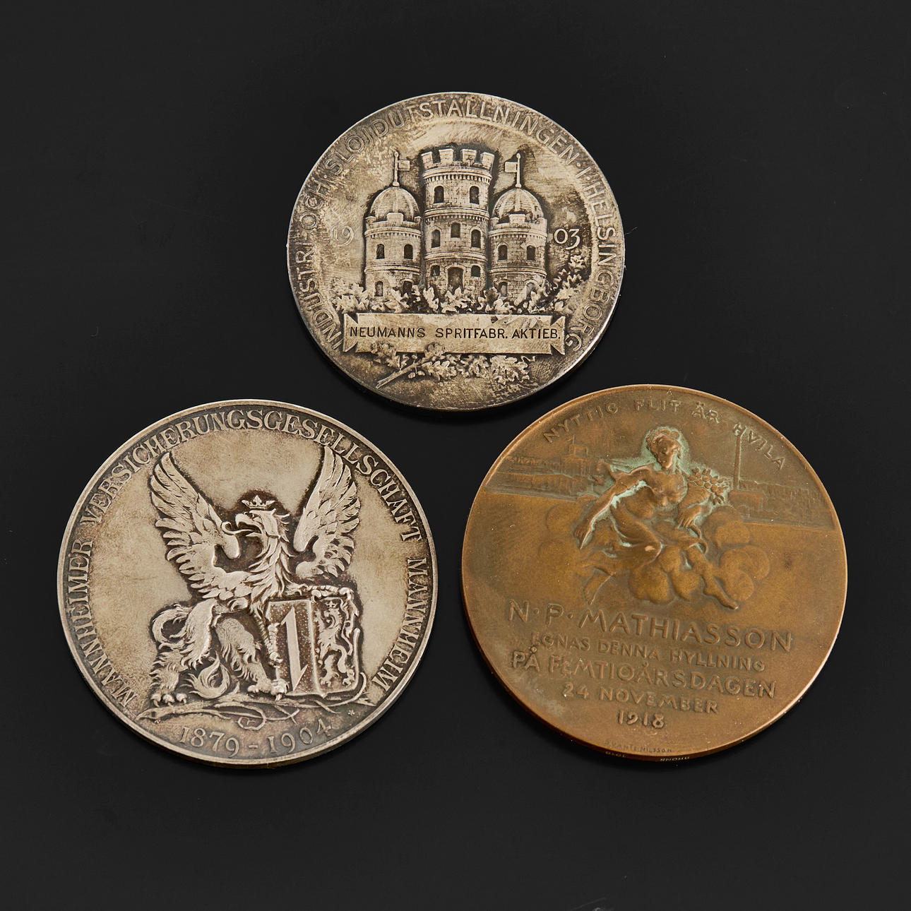 -The Undustri- and Crafts Exhibition in Helsinngborg 1903 - “Neumann's spritfabr. shares.”. Silver, Diameter 45mm, weight 45g