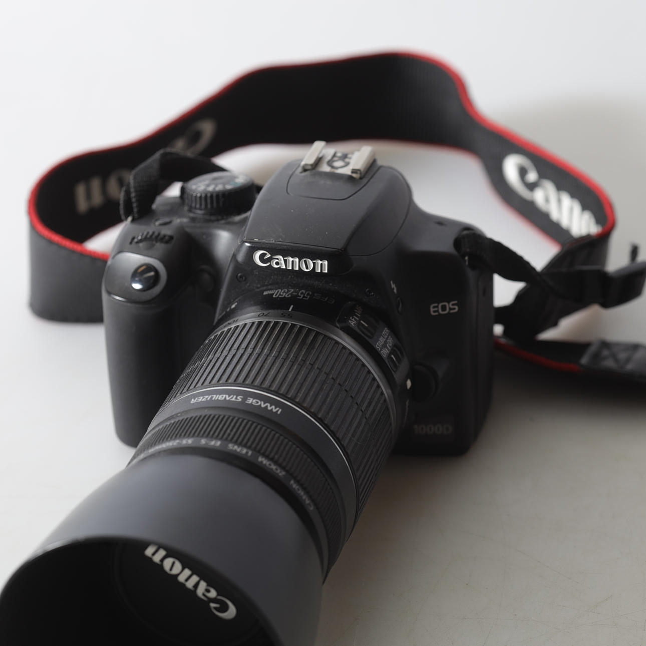 Canon EOS 1000D, marked DS126191, DC 8.1 V, 0780212630, Battery available, cables missing.