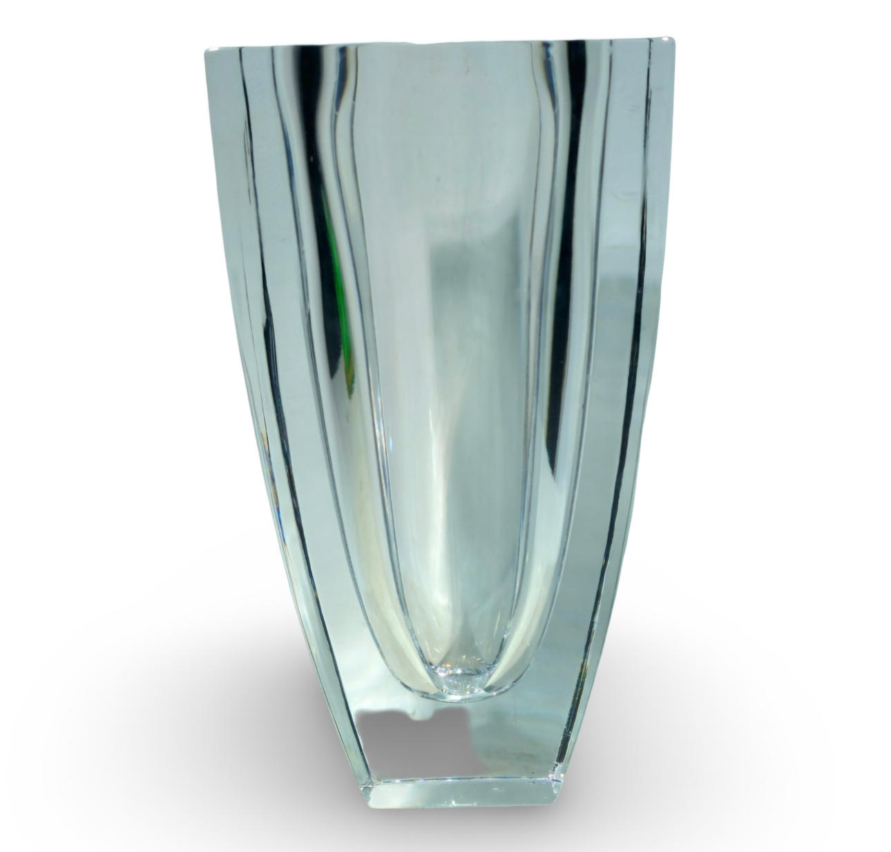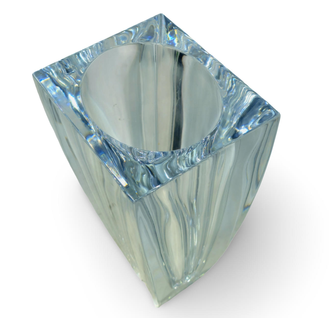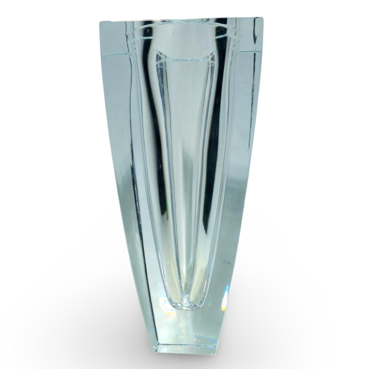 Large vase in thick carved glass.
