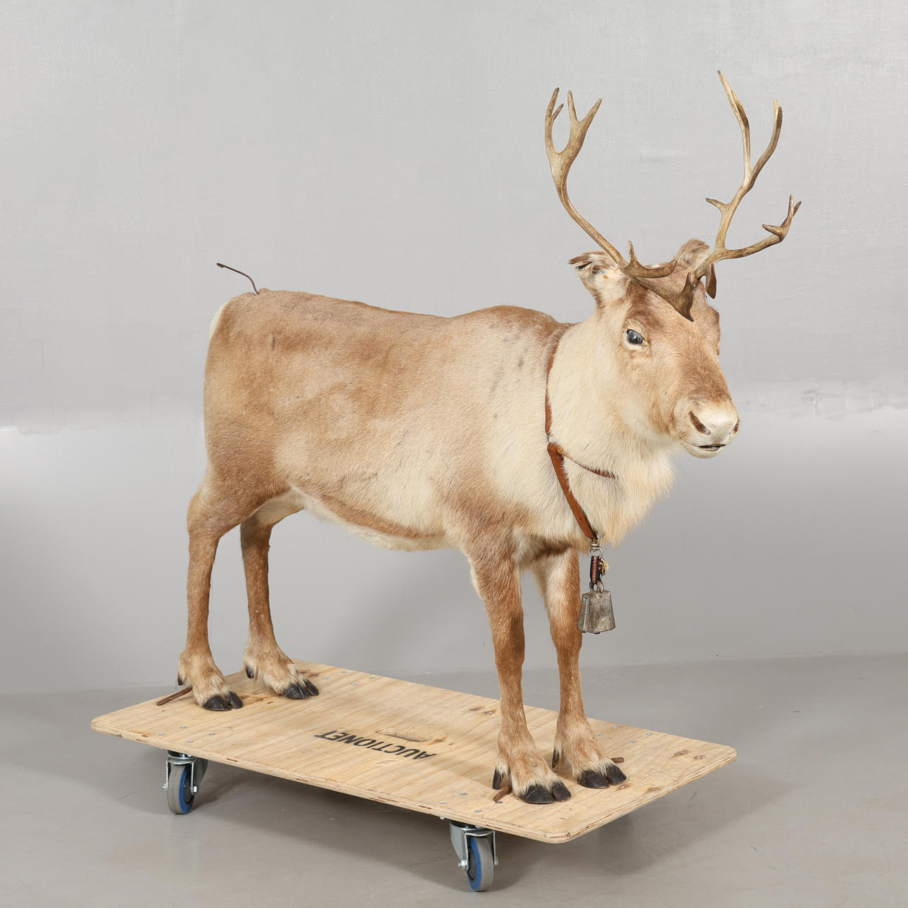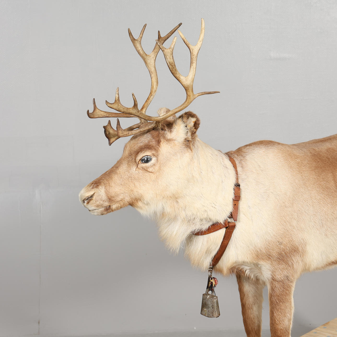 Normal wear and tear, clean without tail, partially peeled off fur, dirt on the sleigh.