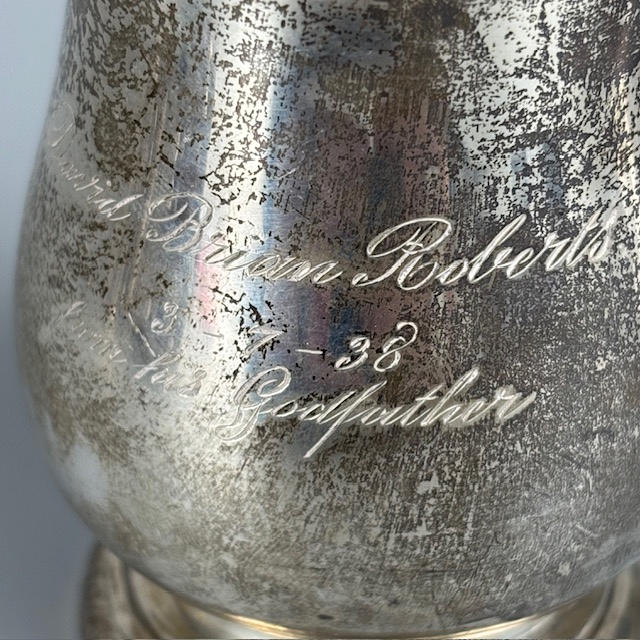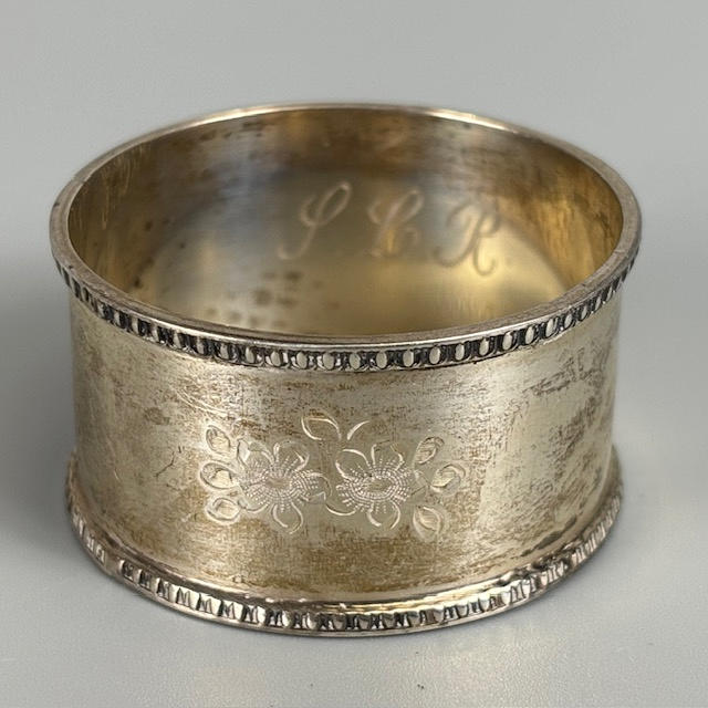 Two fully hallmarked silver christening tankards, and silver hallmarked napkin rings, total approximately 225g.