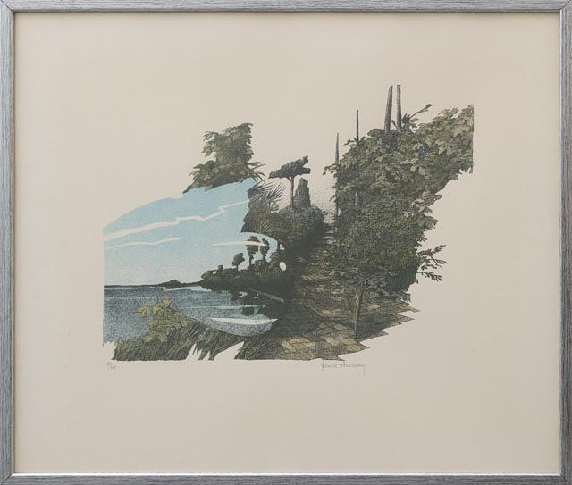 5011631. BENGT BÖCKMAN. Composition with landscape, lithograph no. 55/225, signed.